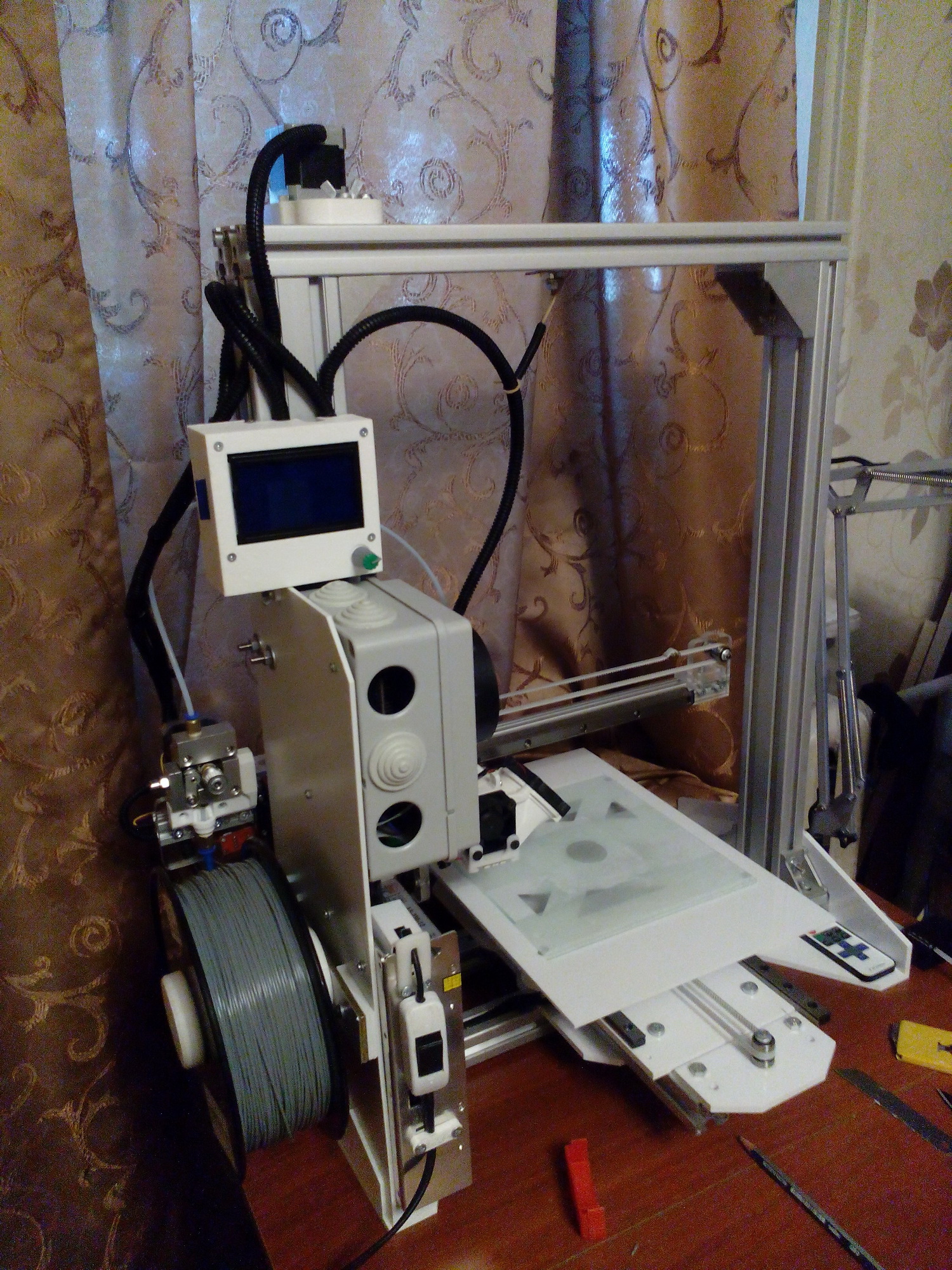 Использую профиля станочные, рельсы профильные 12 и 15мм (с цилиндрами больше возьни, да и размеры жрут они). Ремни стоят gt2 и t2,5. Стараюсь делать так, чтобы заменить любую деталь можно было в течении 2х часов. Пока поломок в китайской электроники не замечено. По ценам не скажу точно, многие детали брал до повышения цен. Думаю при нынешних ценах принтер обошелся бы тысяч в 30000(+_).