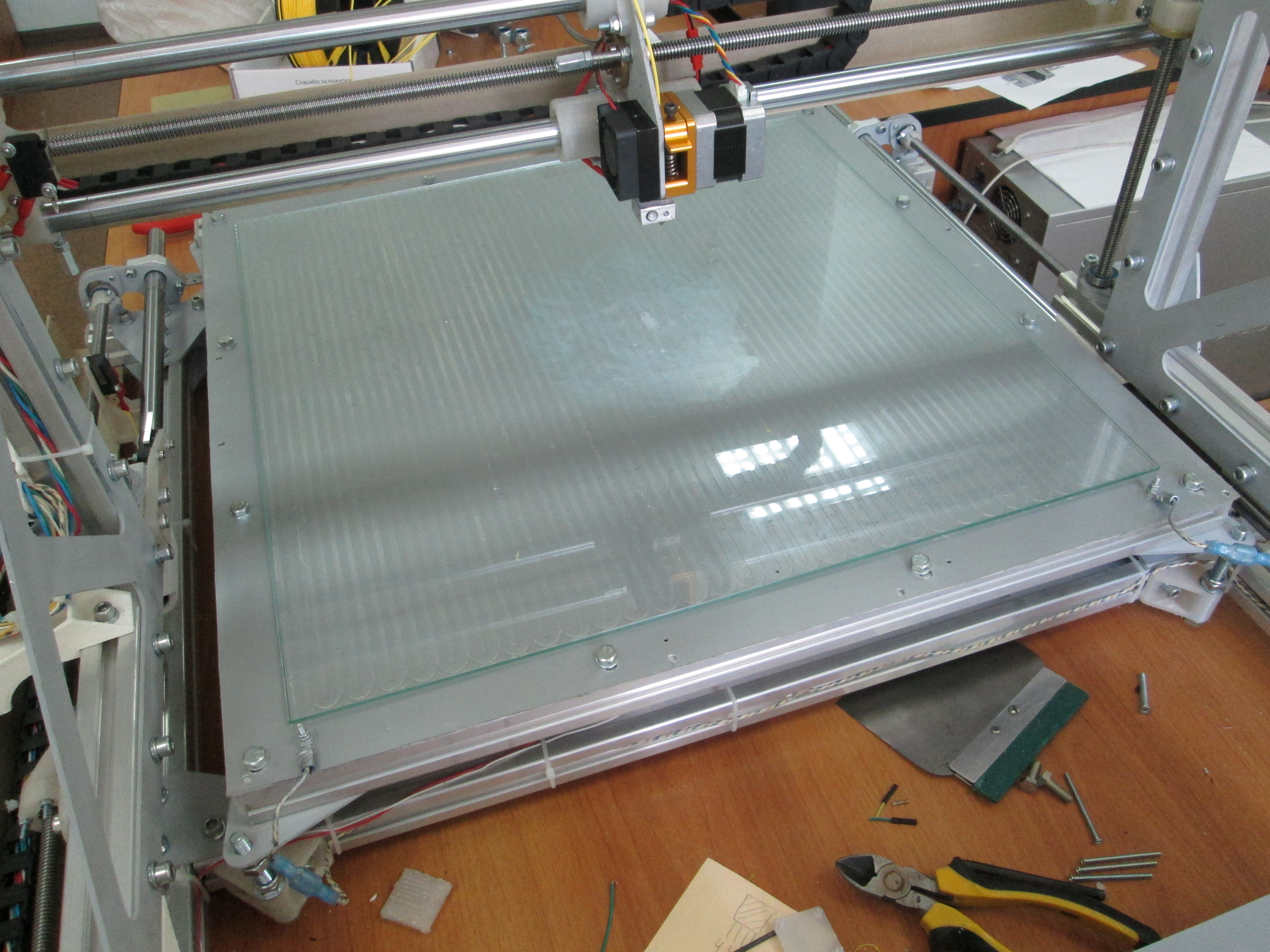 У меня проблема: собрал 3D принтер собственной конструкции, все работает за исключением горячего стола, он прогревается до 50-60 град за 20-30 мин и все. Размер рабочей зоны 500х500 мм, стол выполнен в виде платы из фольгированного текстолита FR-4 Толщиной 1,5 мм с фольгой 35 мкм, нагревательный элемент выполнен на плате в виде змеевика длиной 3010 мм и шириной 5 мм. Блок питания: 24В и 21 А.
