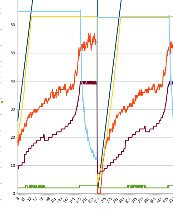 Фиолетовая линия идет до 40-ка, и только после этого шаттер начинает реагировать (голубая линия), обваливаясь на фоне продолжающего расти SQUAL (красная линия). ПРи этом САКС_ПИКСЕЛЬ уже давно в 63 сидит - желтая линия.