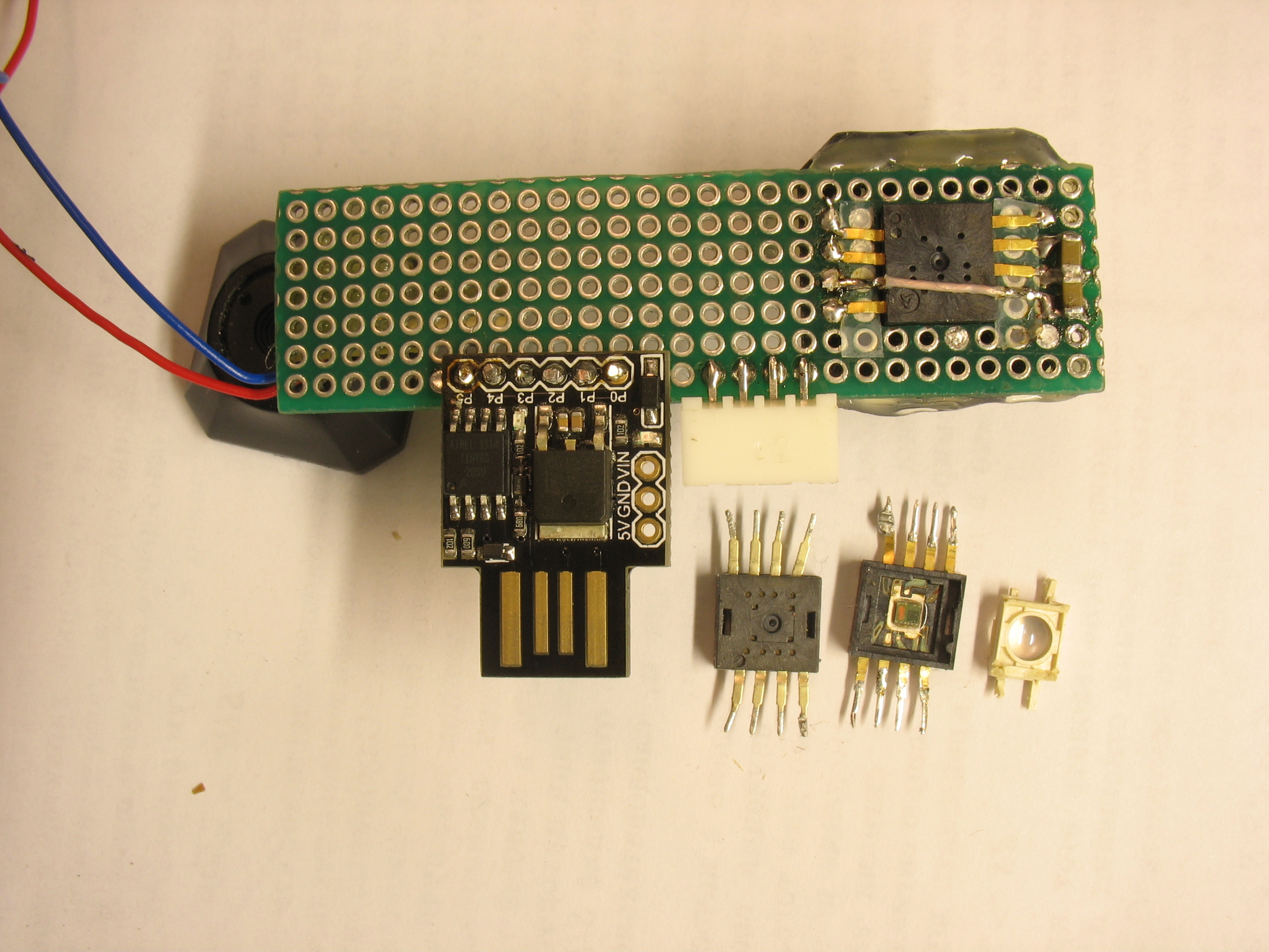 Наигравшись с пзс, решил проверить дешевые обьективы от камер. Для этого перенес пзс на макетную плату. Чтоб лучше приблизить обьектив к чипу, решил поставить пзс в отверстие в печатке, а сам чип распаивал как планарную микросхему. Плату после пропила надо хорошо отмыть с мылом, чтоб убрать всю пыль. Колпачок с микросхемы снимать в последний момент. Для примерки отверстия в плате, лучше использовать ненужные чип, коих должно быть много, т.к. идут в датчик не все.