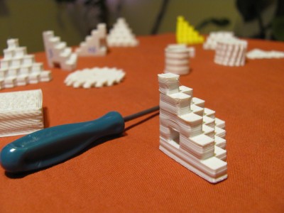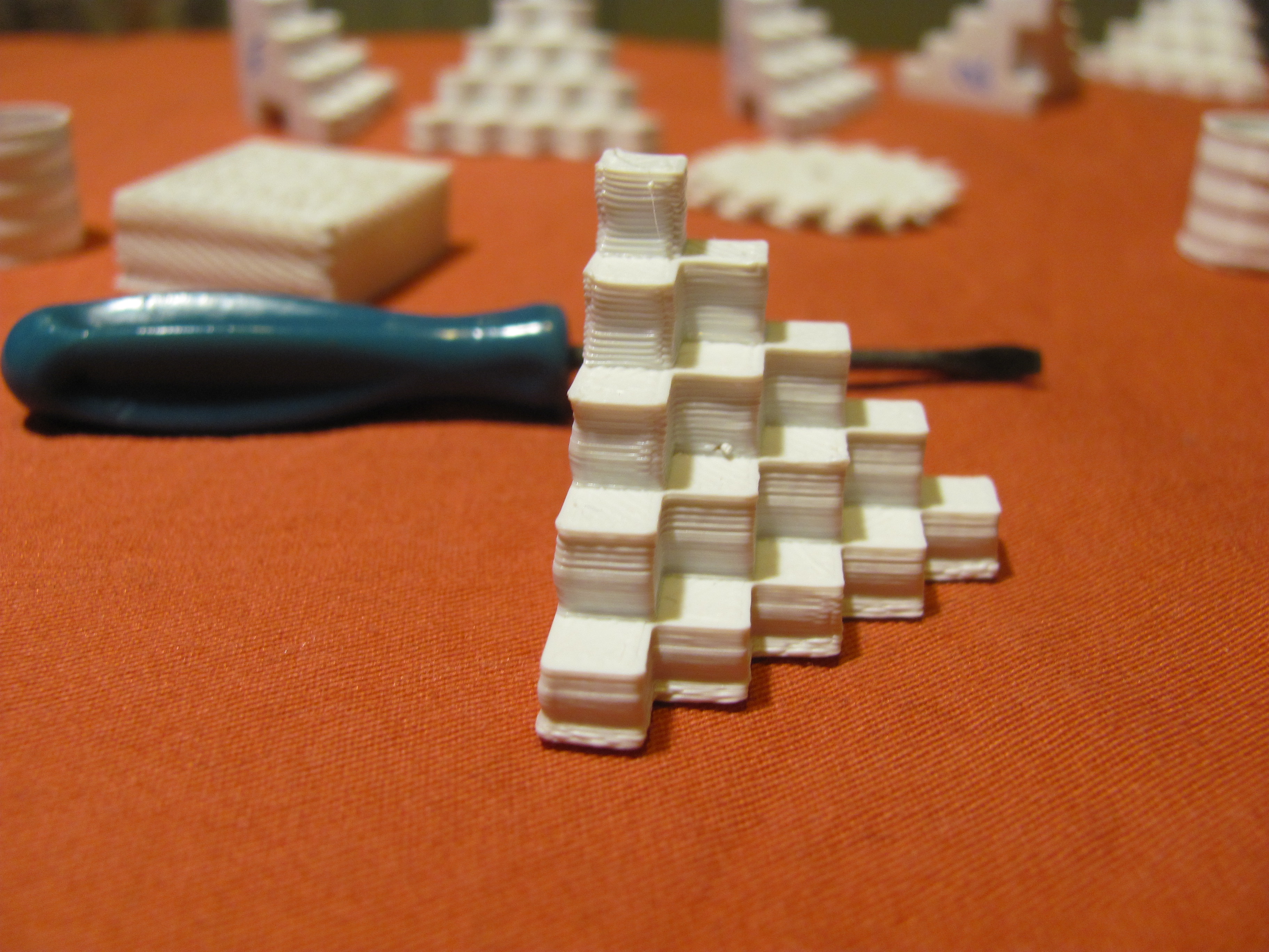 первые пробные печати - не очень успешны - сначала из-за не зажатой шестеренки на Х было смещение слоев - но для новичка это не было очевидно...