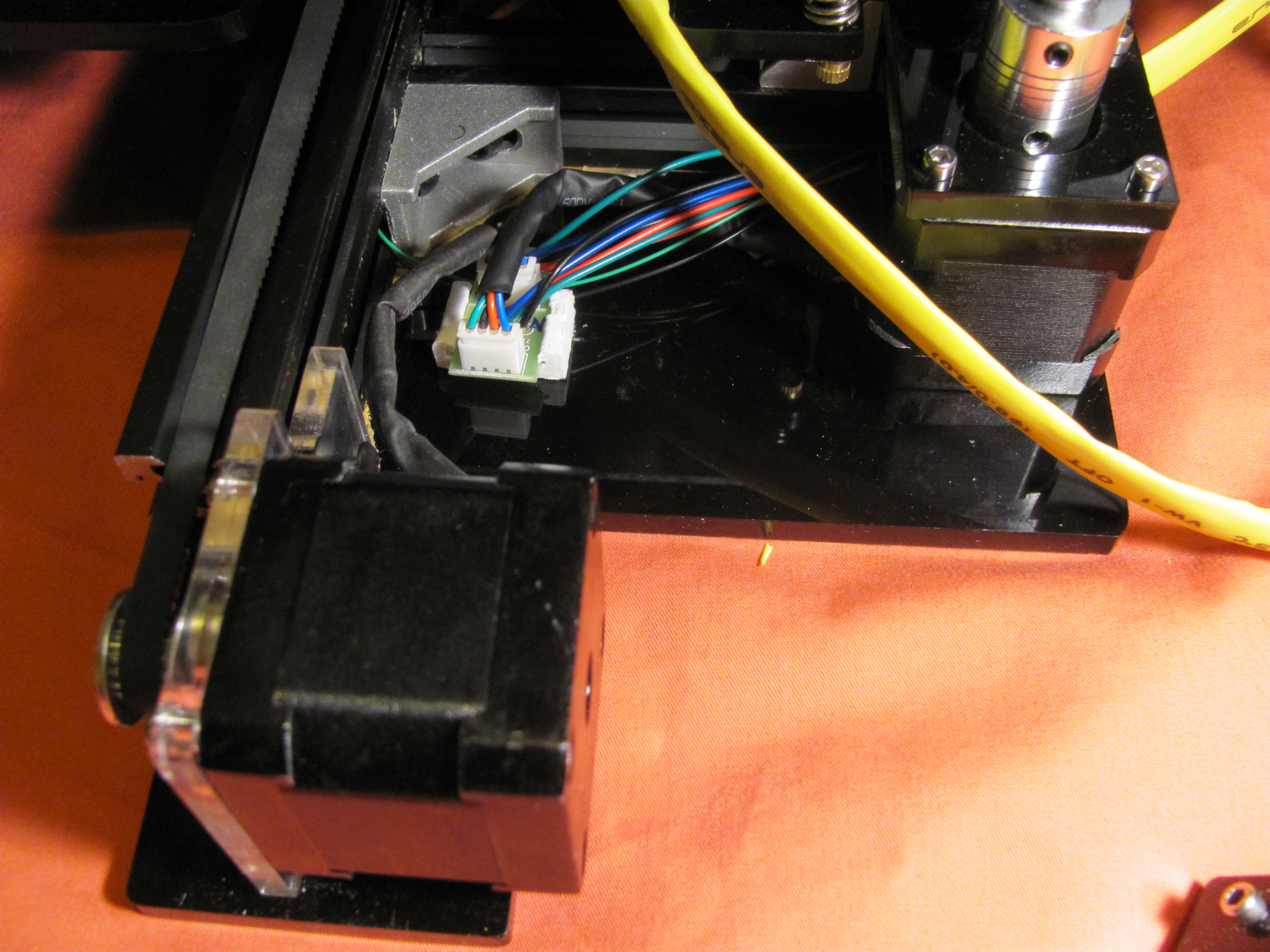 а заодно и немного модернизировать моего 3д друга - сделал разводку на концевики в макс положении (после пары неприятных моментов), подвел провода к экструдеру для кулерра обдува модели и сделал подсветку области печати из светодиодной ленты.