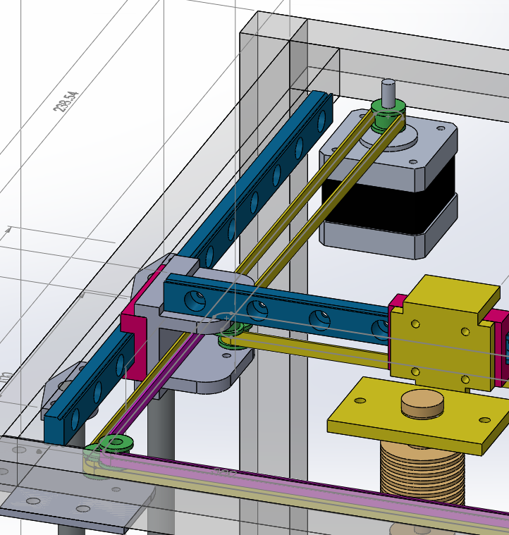 Чёт я запутался. Есть такой неприятный момент у CoreXY/H-Bot кинематики. Точнее это даже относится к способу крепления направляющей оси X (та самая перекладина в букве H). Если один край с кареткой зафиксировать и подёргать за другой, то можно увидеть не хилые отклонения. И чем длиннее эта перекладина, тем сильнее эффект. Оно и понятно, рычаг-то увеличивается.