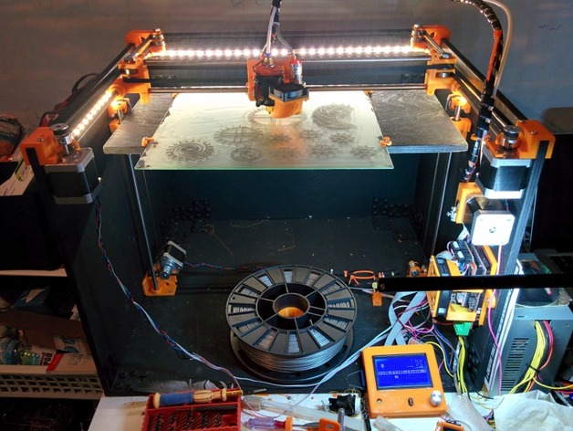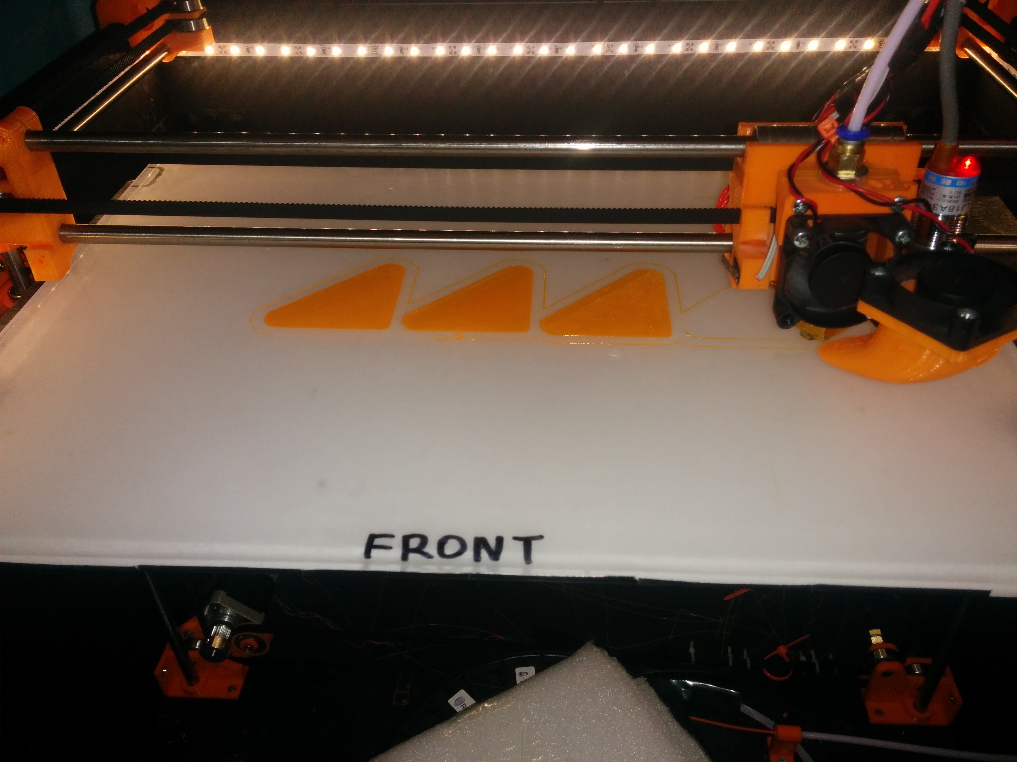 Хотел бы услышать ваши идеи, коллеги. На малых областях печати мне было достаточно добавить % экструзии на первый слой и все печаталось хорошо. А вот на этом принтере область печати больше(35*35см) - уже не прокатывает.