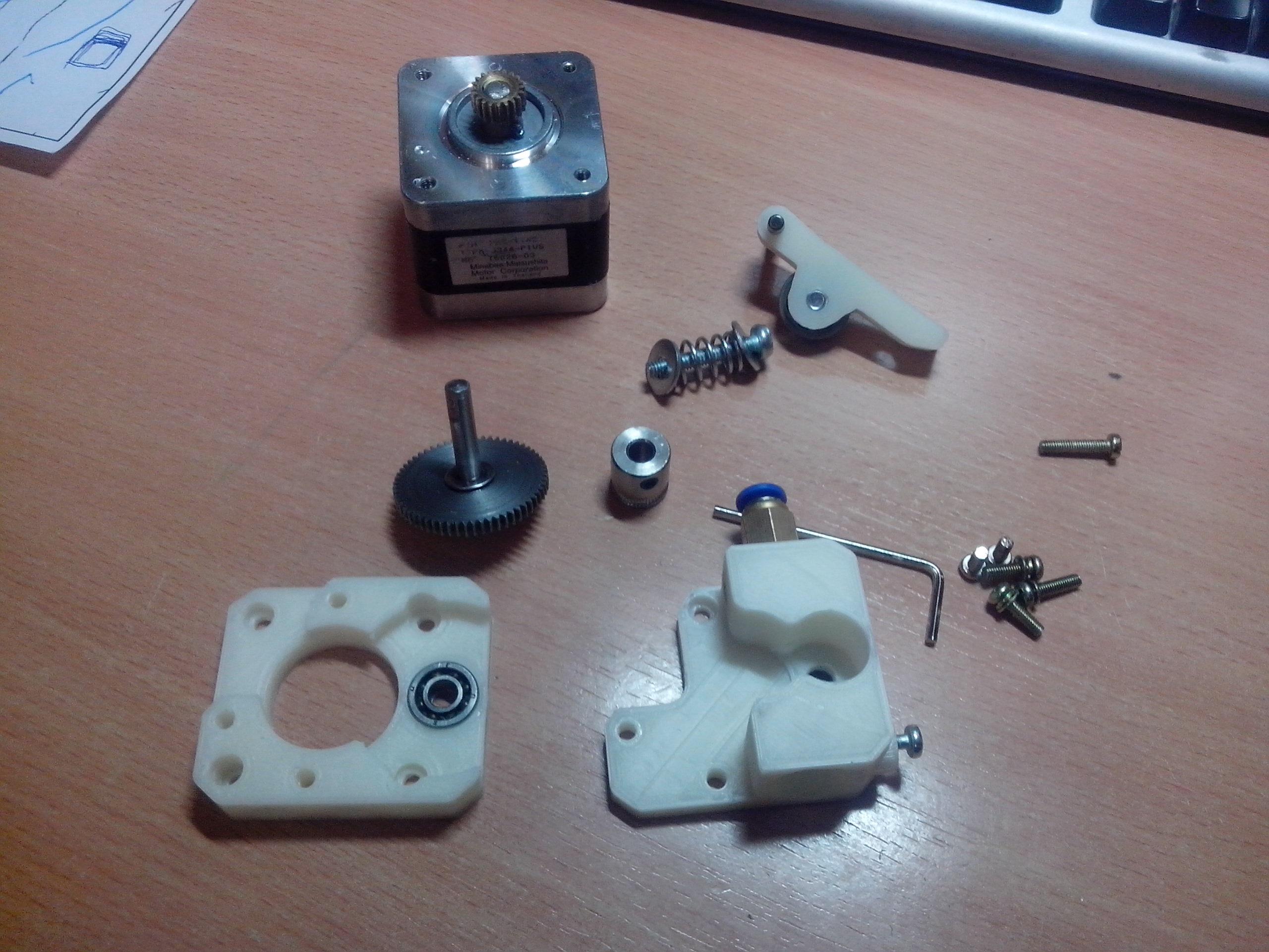http://www.thingiverse.com/thing:795098/#files Вертикальная компоновка наиболее предпочтительна имхо, т.к. именно по вертикали меньше ограничений по размеру. Рисовался экструдер под двигатель нема14.