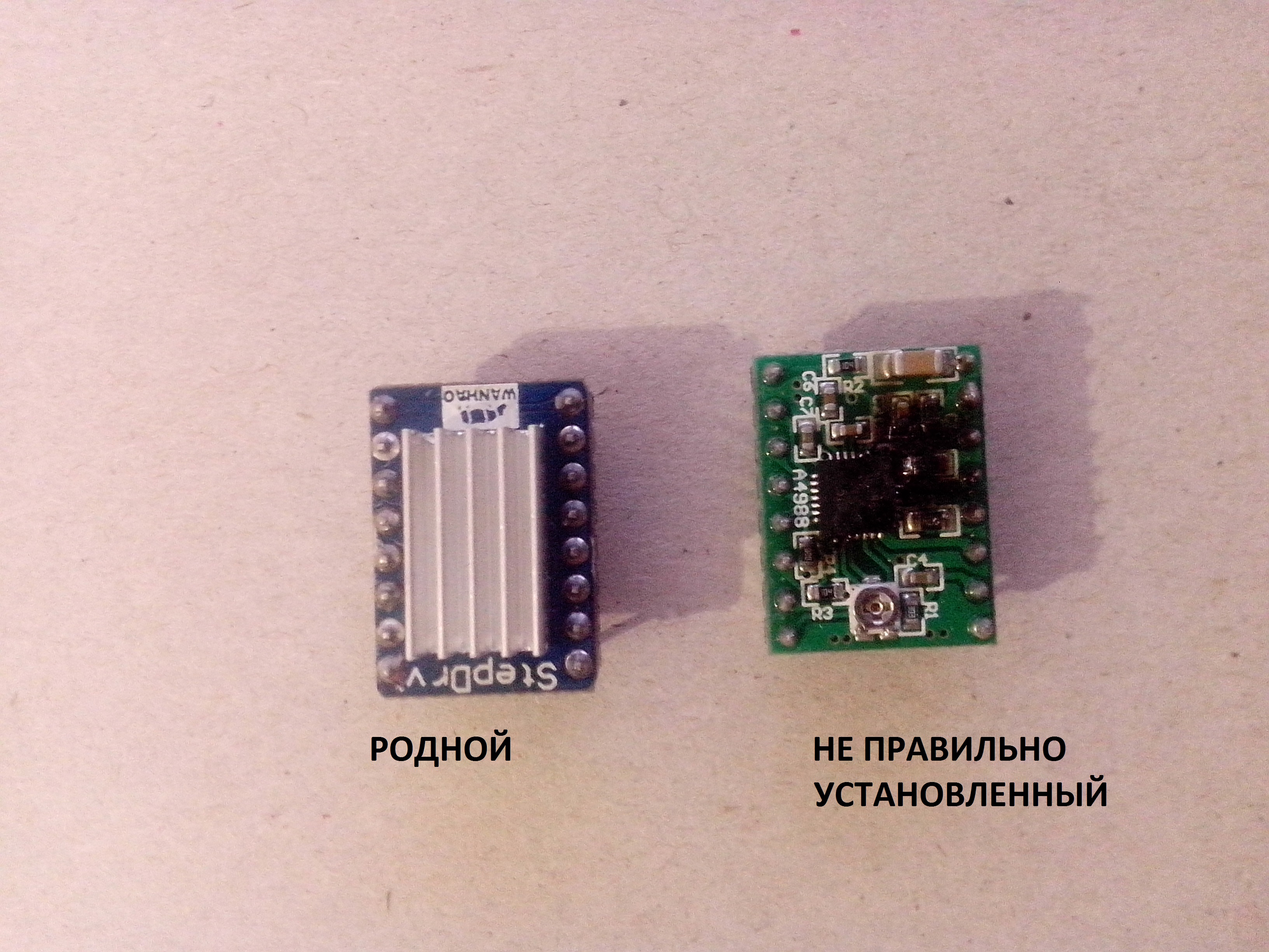 Что сделал я и как было у меня, заказал мать, драйвера на Али, когда всё пришло плата установилась. А драйвера я заказывал без паянных ножек. Думал переверну драйвер(на оригинале тоже есть обозначение ножек) и всё встанет как положено, поставил, принтер расстояние мерил х2.