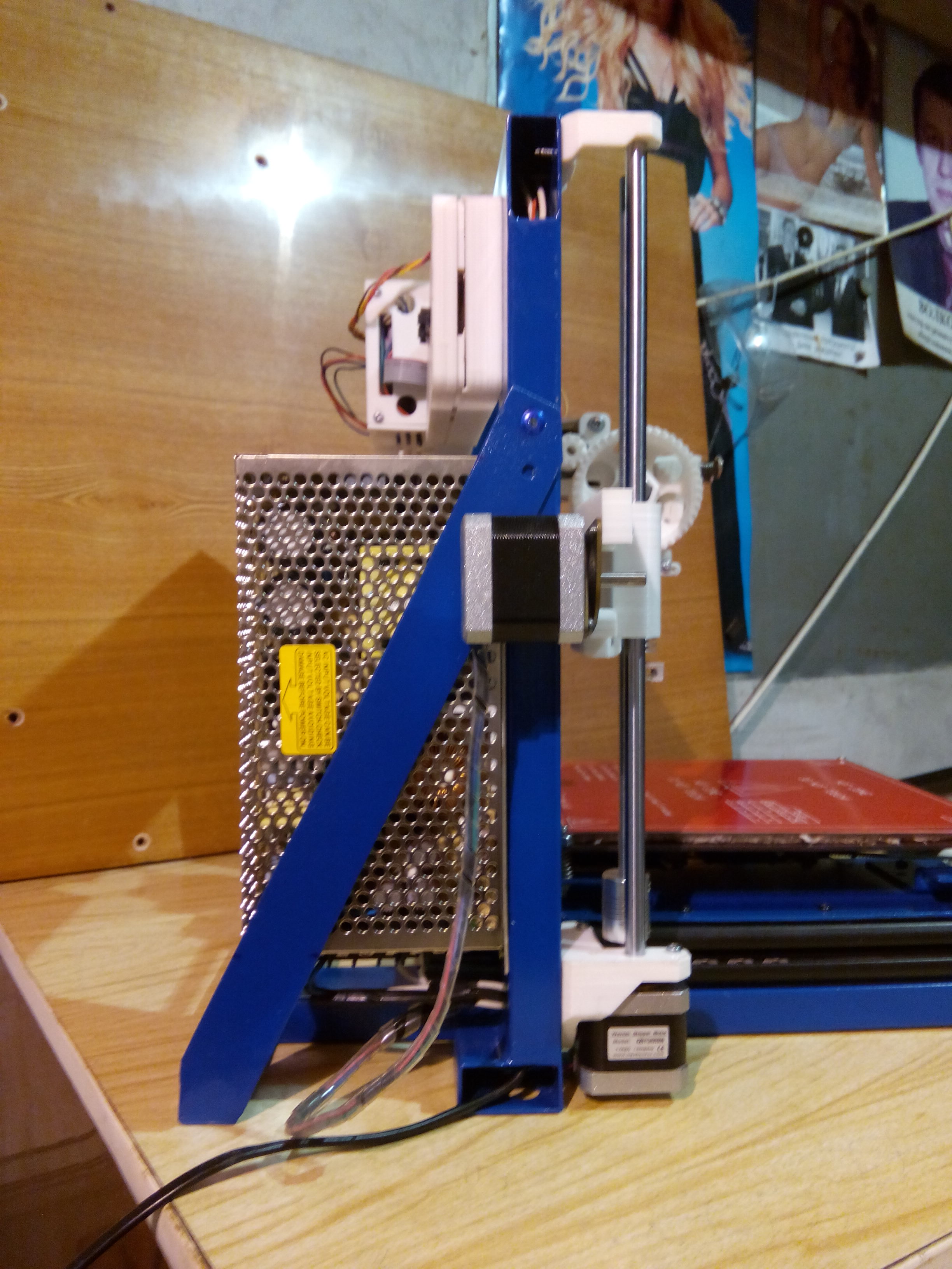 За основу взял Prusa i3 Rework только в качестве направляющих применил не валы, а отличные направляющие от стальных шкафов.