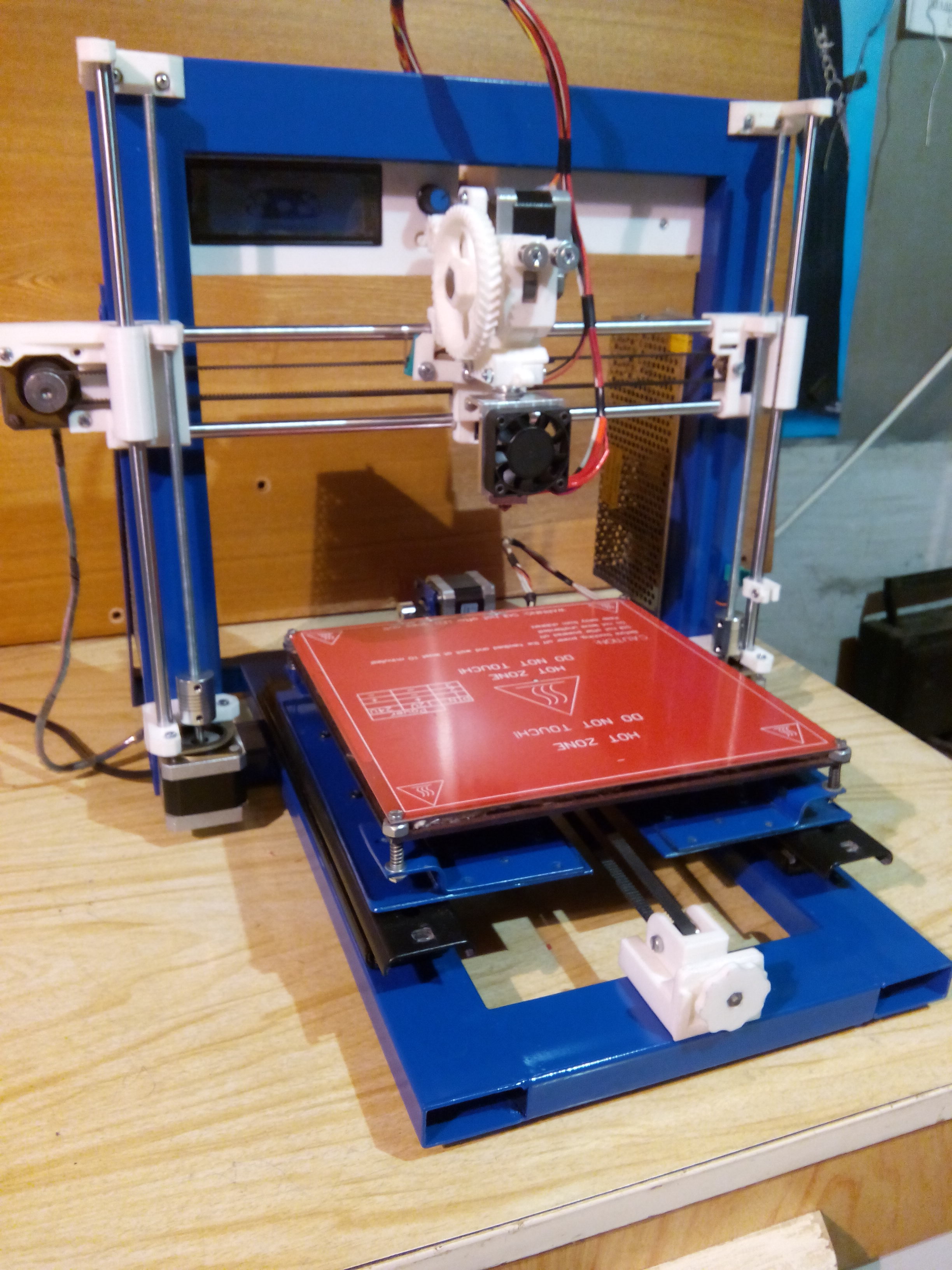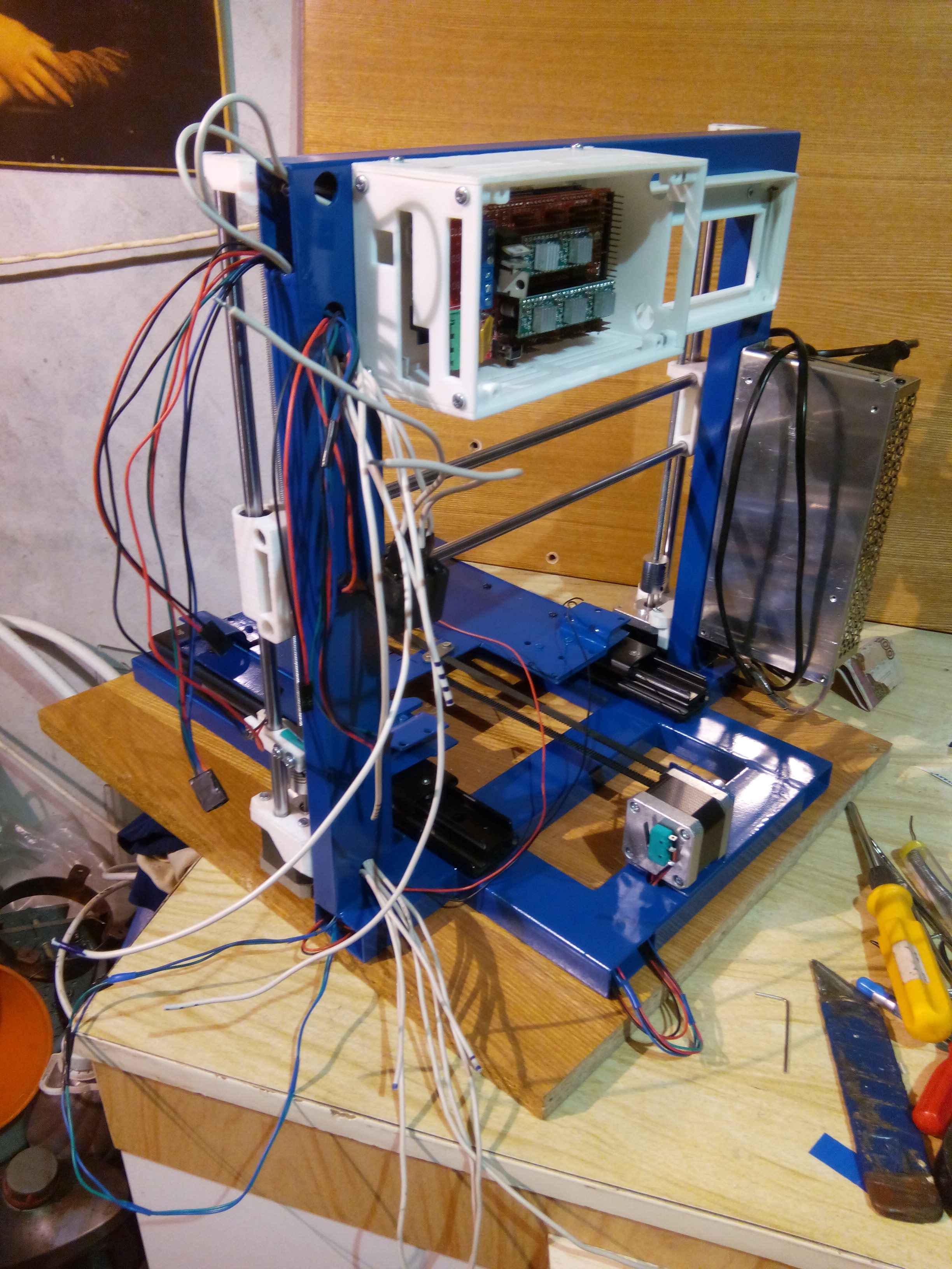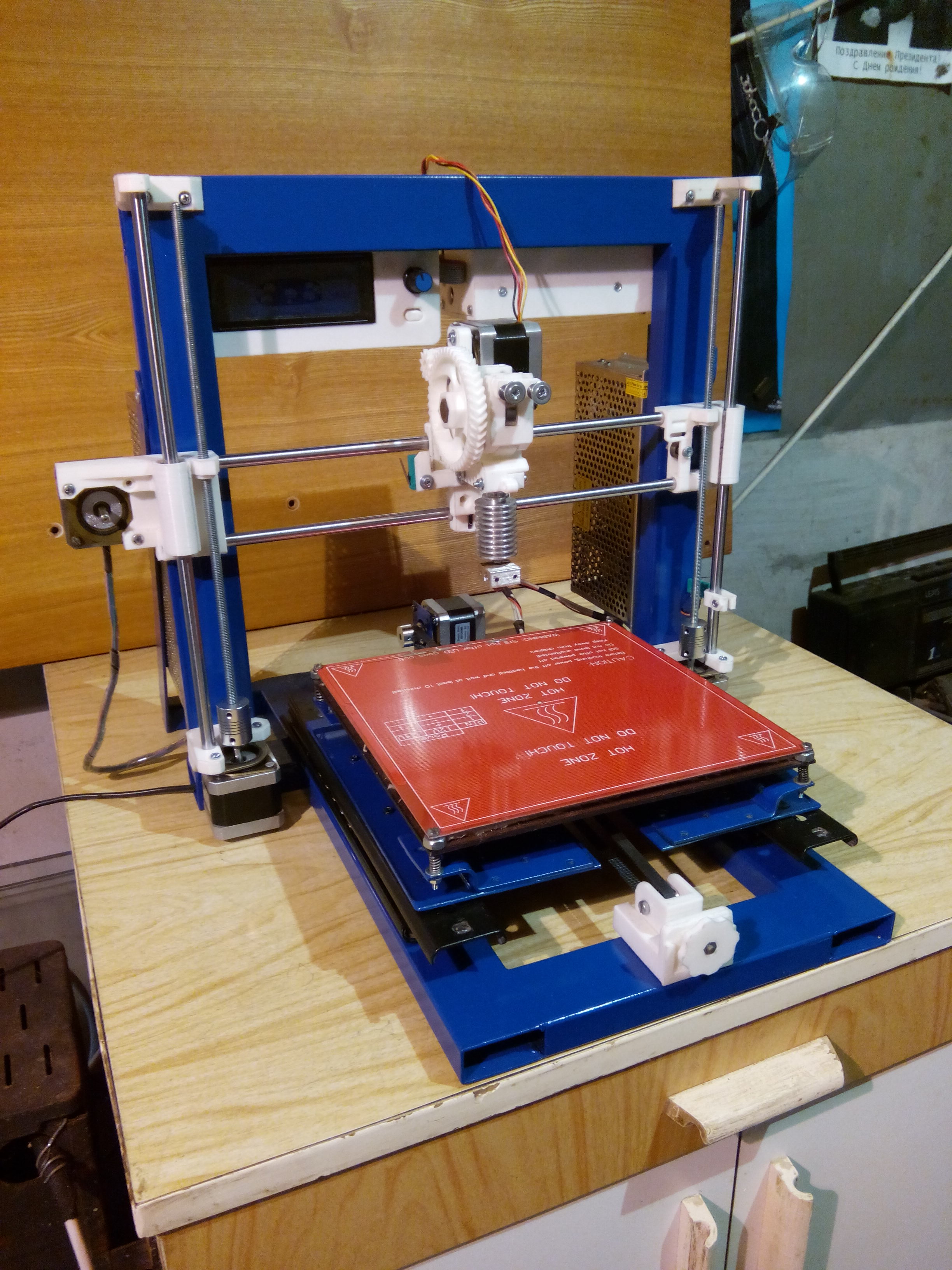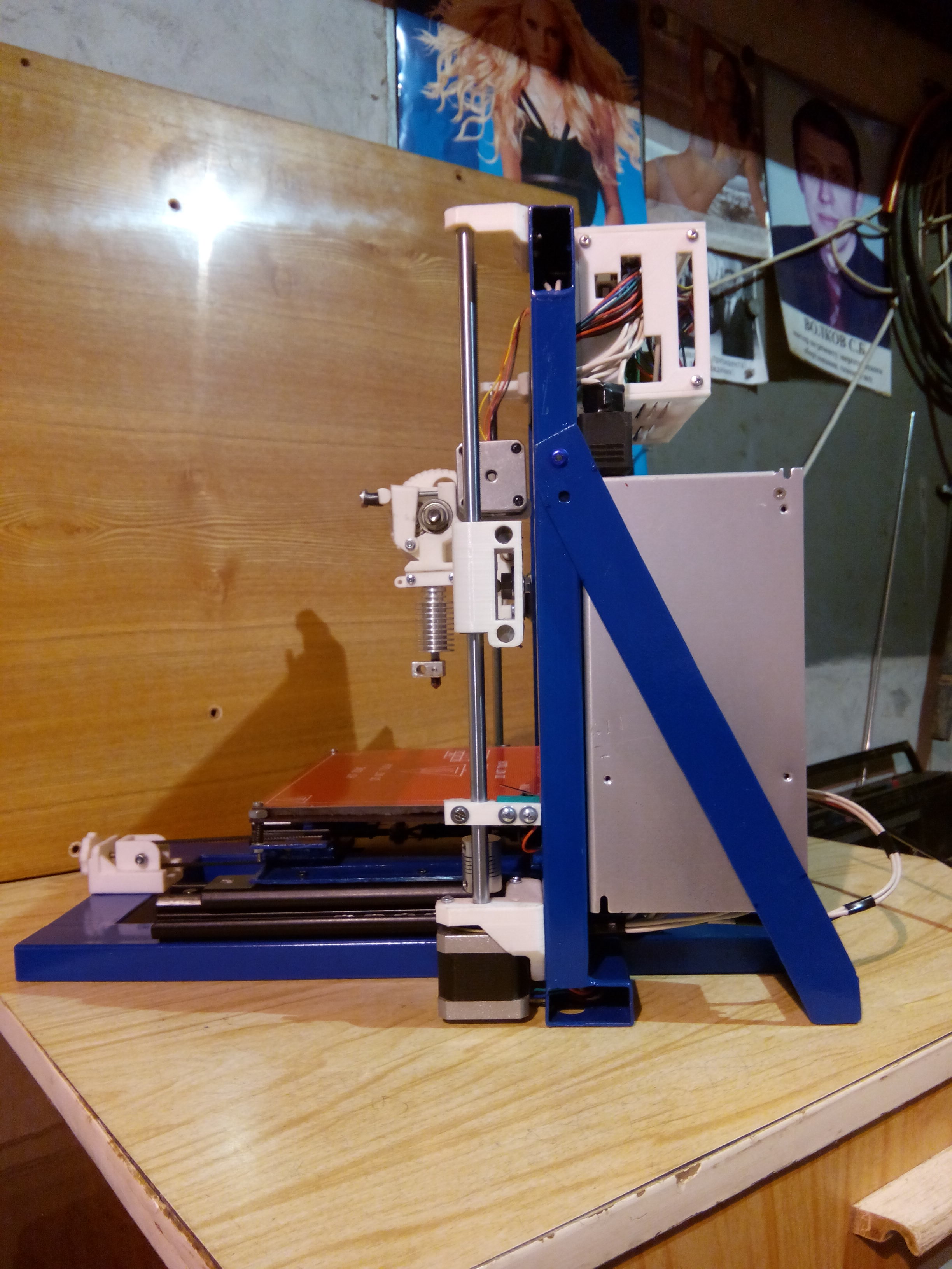 За основу взял Prusa i3 Rework только в качестве направляющих применил не валы, а отличные направляющие от стальных шкафов.
