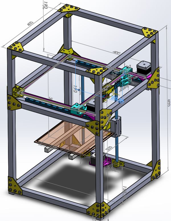 Наконец решился построить второй принтер. В духе тенденций на форуме выбрал механику CoreXY. Жёлтый цвет просто потому, что купил бобину жёлтого PETG и почти всё печатаю им. Хочу сделать быстрый принтер, в аккуратном закрывающемся корпусе.