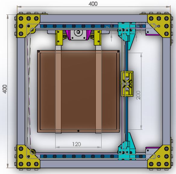 Модель показывает подвижность экструдера в габаритах 250х250, т.е. есть потенциал уменьшения внешних габаритов. Пока буду использовать это дополнительное пространство передвижения для установки разных экструдеров.