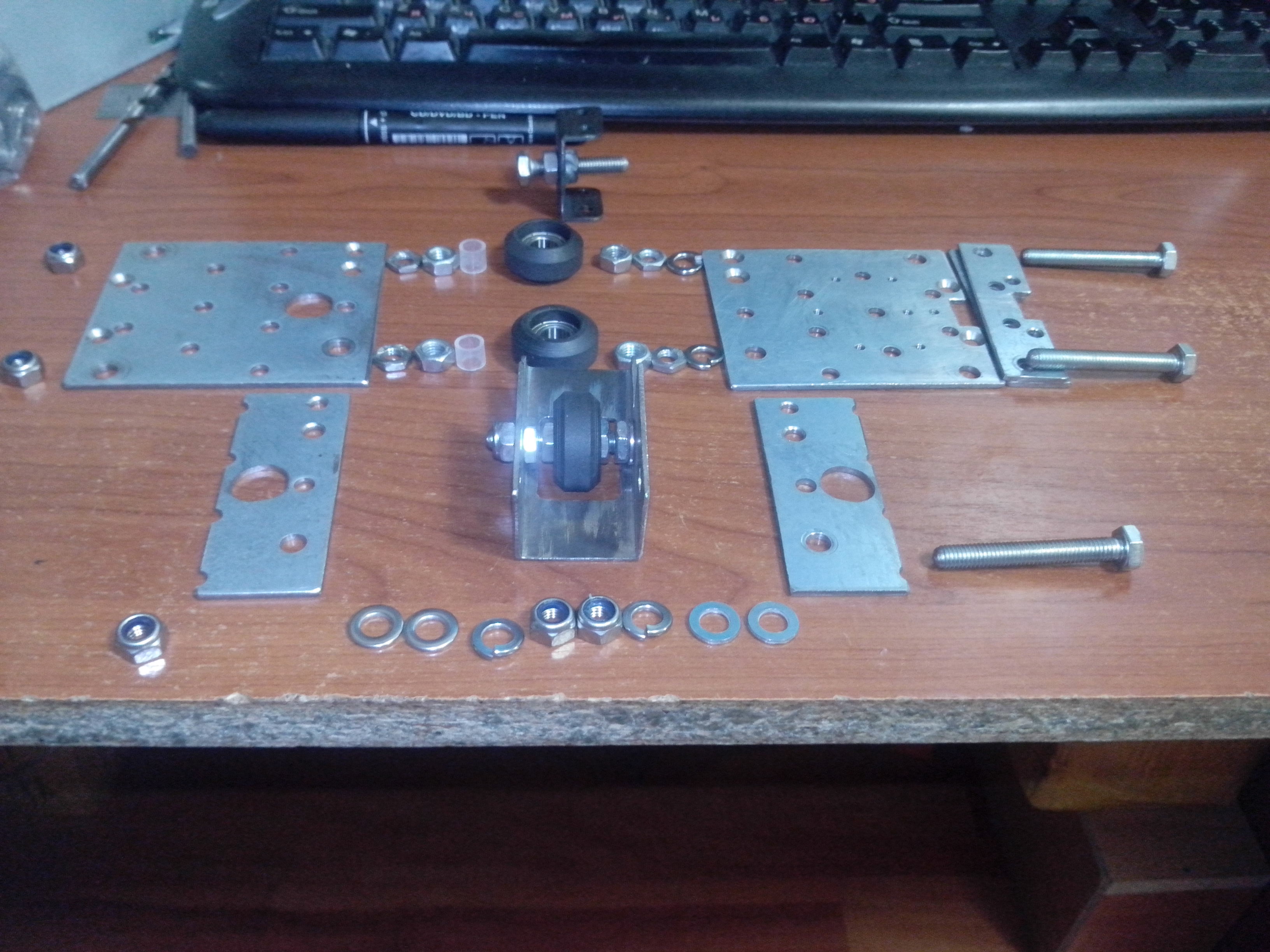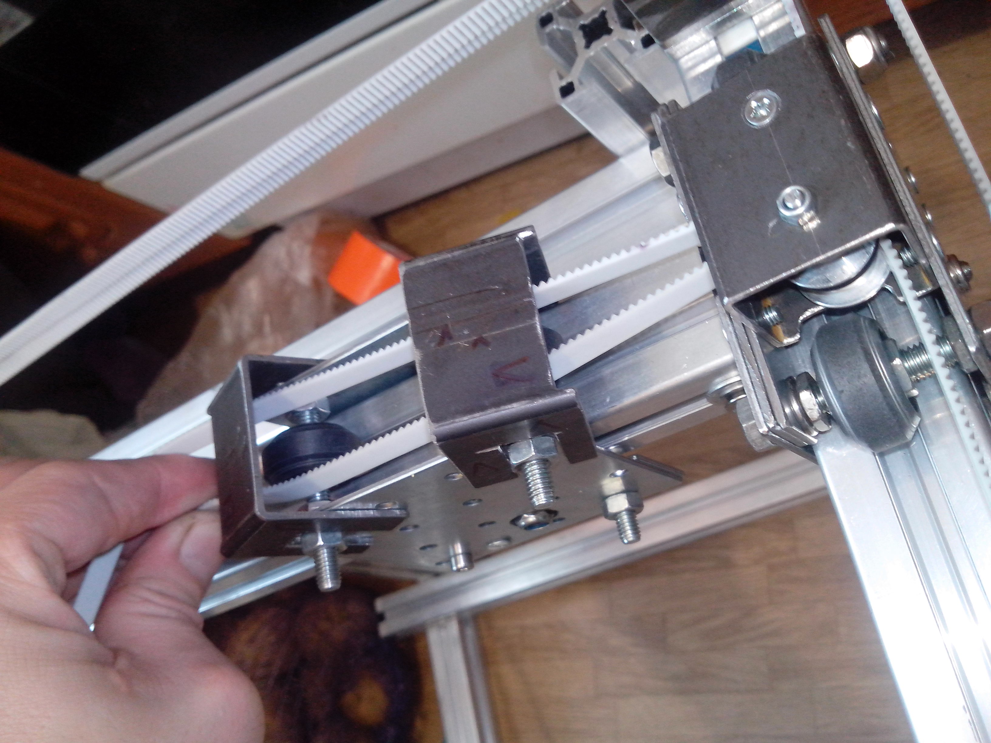 поделюсь реализацией направляющих с прижимом. все из подручных материалов, 688 подшипника, точеного токарем ролика из маслом пропитанного капролона(стоят на оси с экструдером) и графитом наполненного капролона(на двух направляющих по Y(он не понравился крошится графит смешивается с алюминием образуя грязь в пазах, хотя сейчас притерся, накатались канавки и перестал крошиться)) и работы руками, УШМ и дрель. примерно подходящие под размер ролики видел в магазинах мебельной фурнитуры, под шкафы купе.
