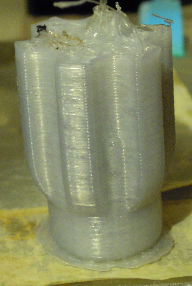 возможно температура пластика высоковата, видны наплывы и верхушка подтаяла.