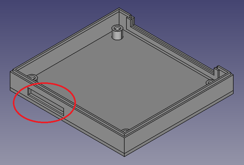 Скажите, как правильно сделать "поддержку", что бы принтер смог напечатать прямоугольное отверстие (на рисунке обведено красным) ?