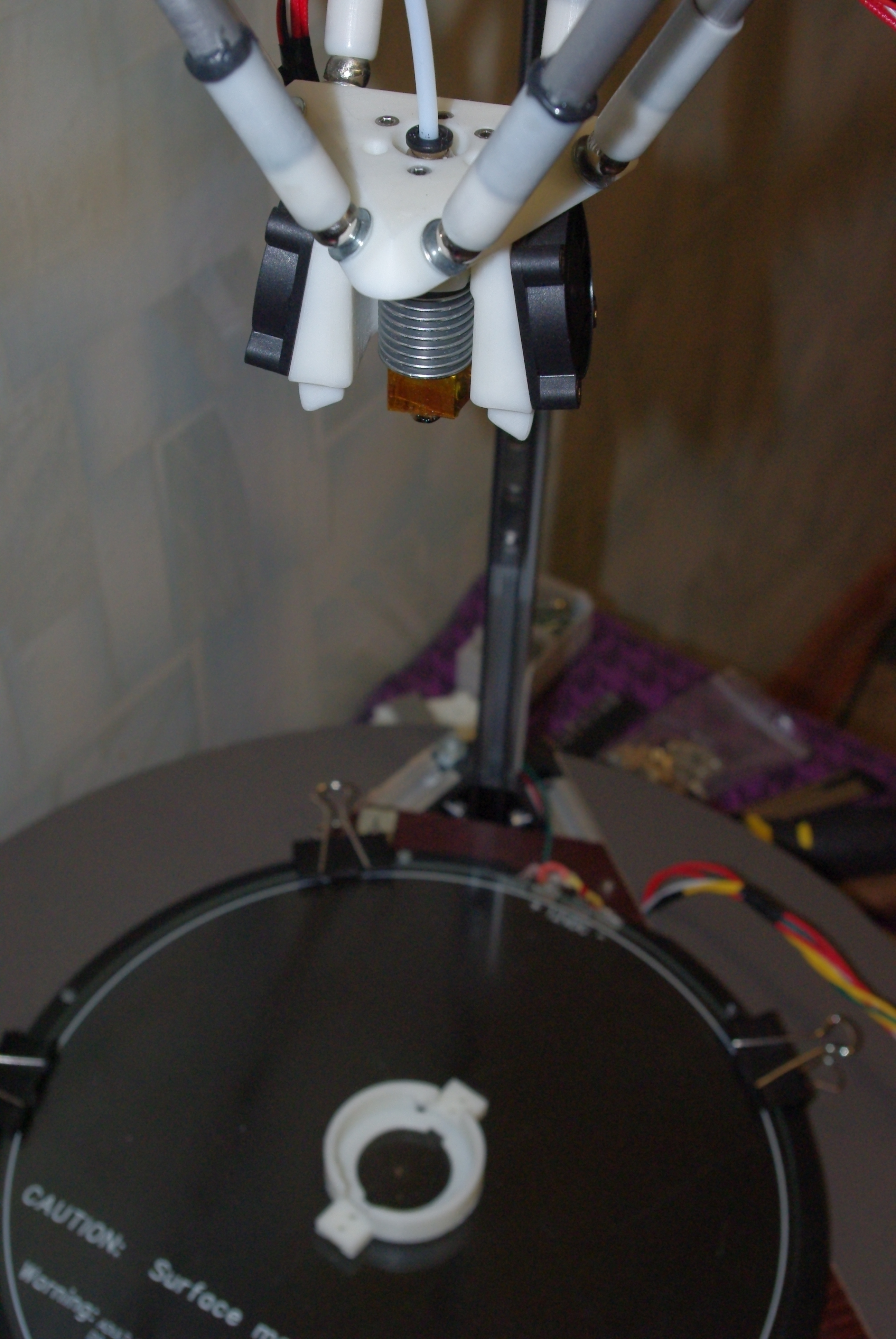 Дельта принтер собран качественно, магнитные тяги склеены одинаковой длины на приспособлении. Прошивка Репетир-Хост.