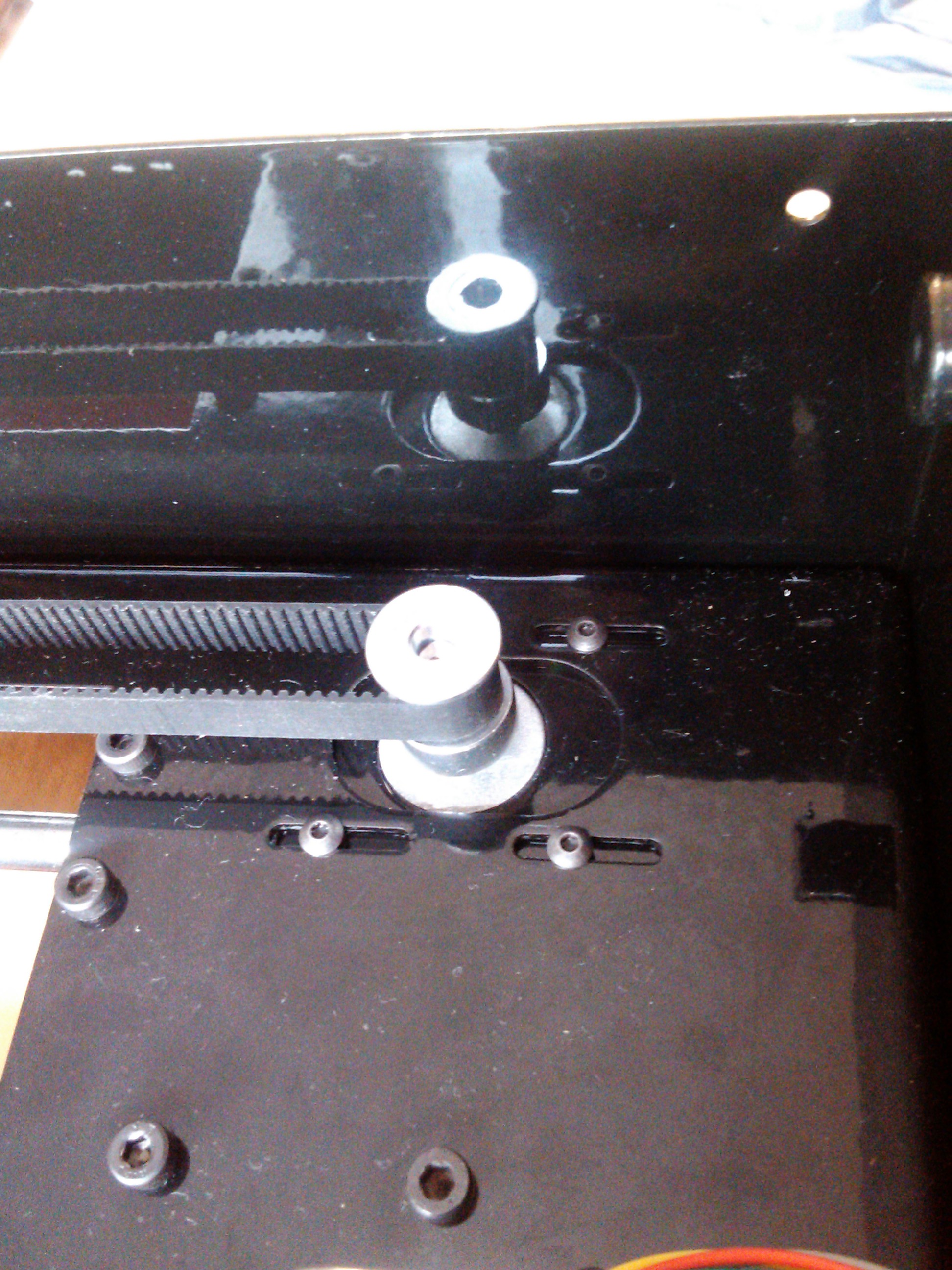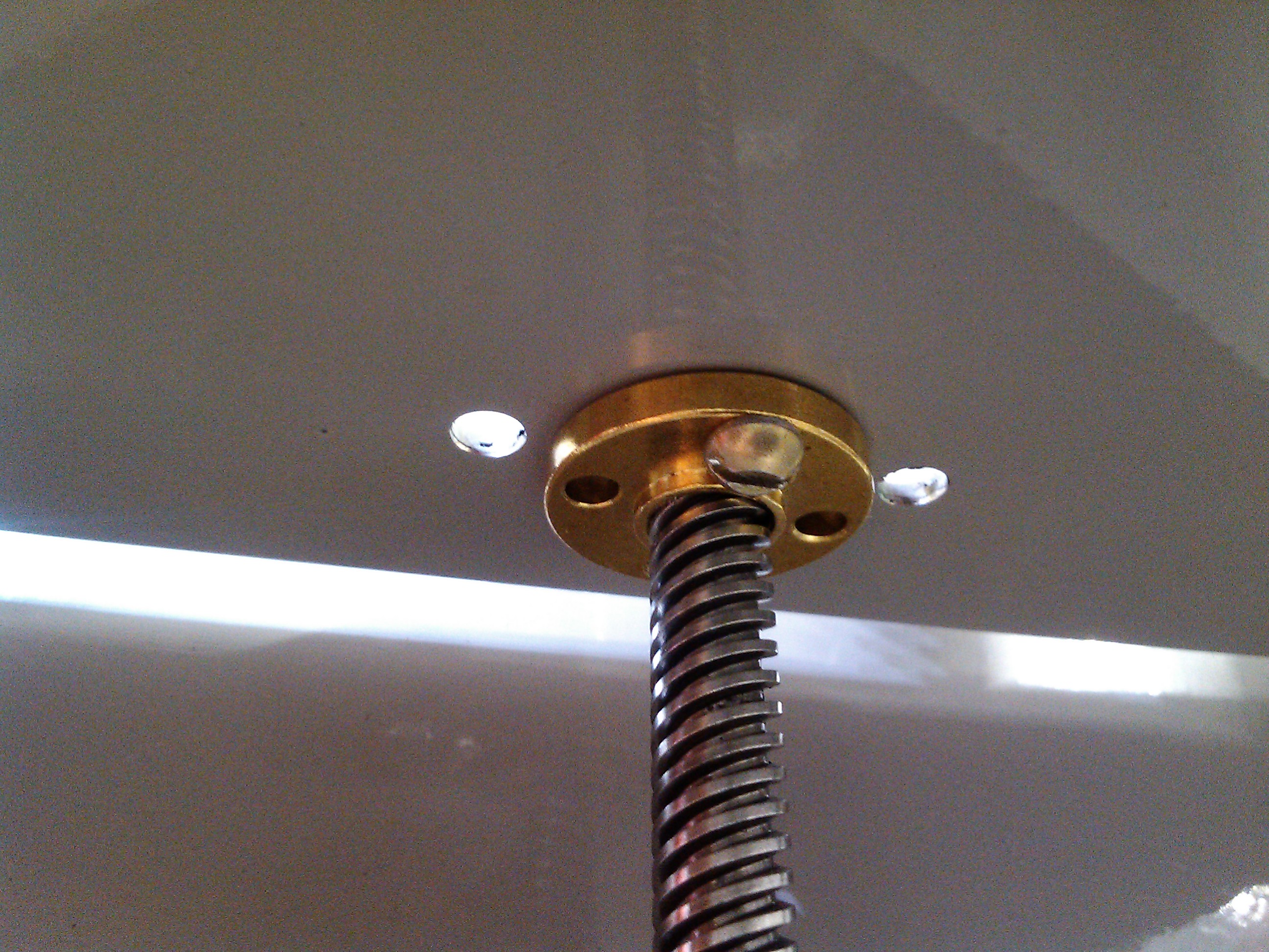 1. По совету уважаемого Myp, гайку оси вставил с низу стола и зафиксировал одним винтом (теперь она свободно качается, но не прокручивается.