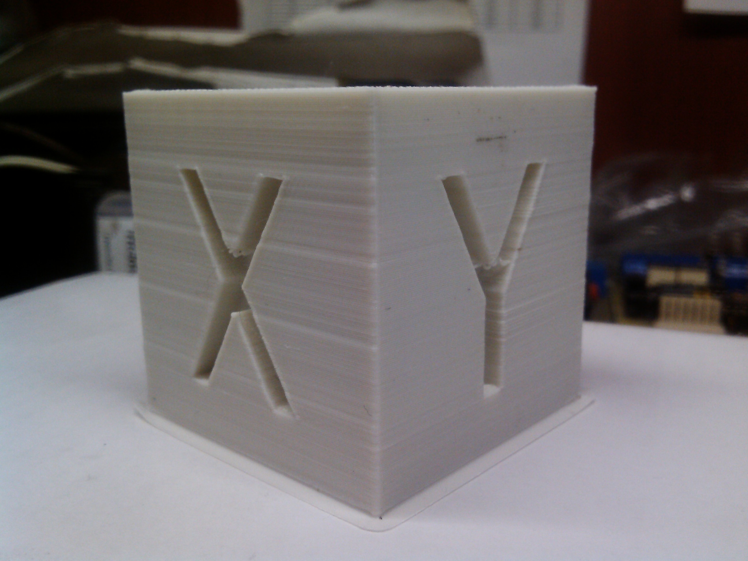 3. Напечатал тестовый кубик (сопло 0.3, слой 0.2, периметр 50, заполнение 200).