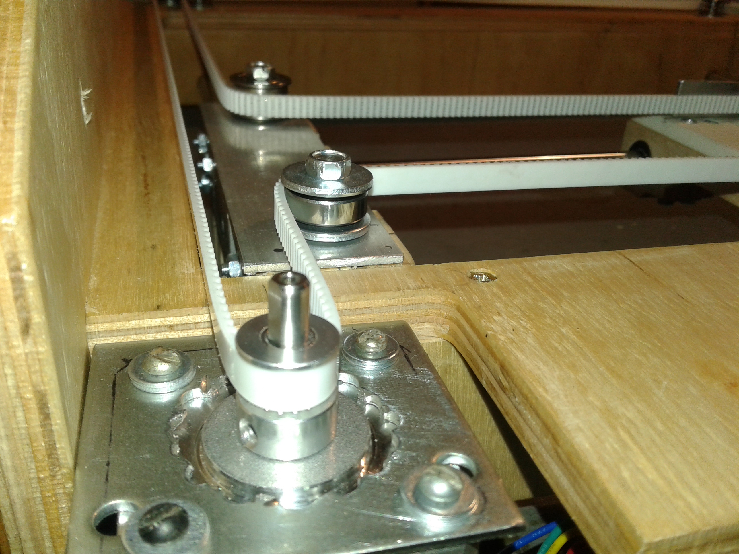 По Y валы 10 с подш. LM10UU- 4шт, и по Х валы 8 мм и подш. LM8UU. Ремень полиуретановый, чуть разнесенный по высоте с перехлестом-переворотом.