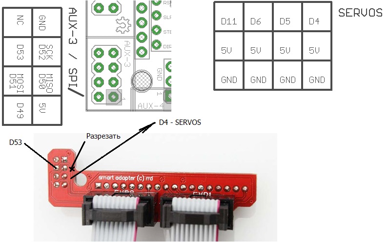 В прошивку соответственно вставить #define SDSS 4 и не использовать третью серву.