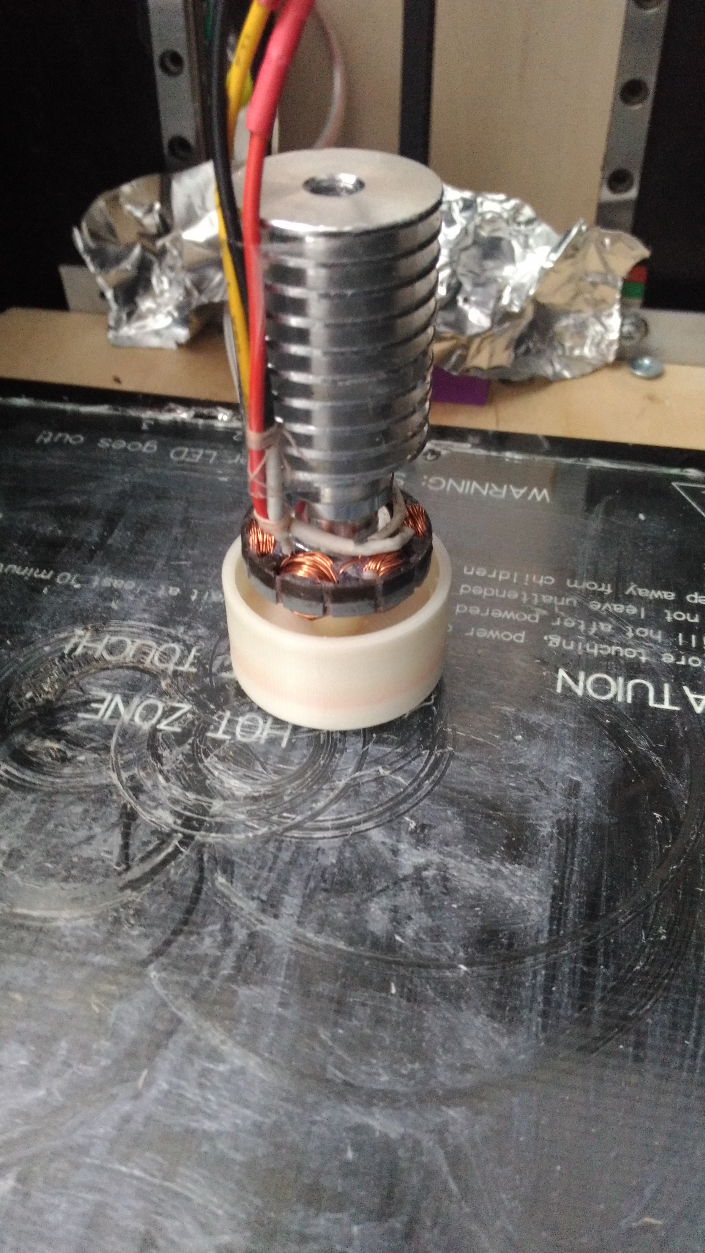 Синхронизация пока по одному датчику холла, прикинул получается 102.8 шага на 1мм прутка, что неплохо ибо у стандартного золотистого экструдера получается 160 микрошагов на мм, спасает редуктор с шагом резьбы 0.25мм.