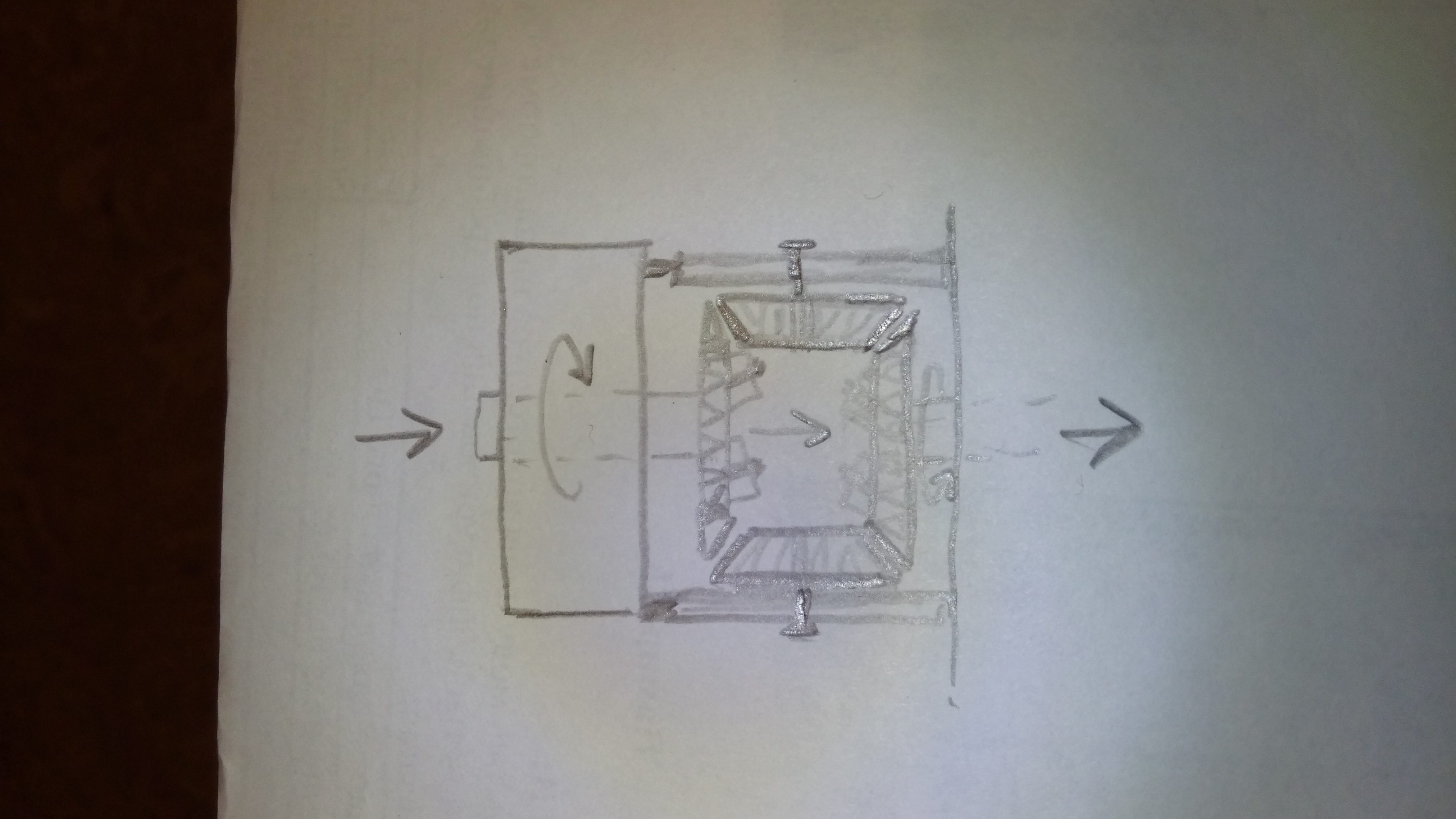 Diffid писал(а):Набросал тут, хоть коряво, но смысл вроде понятен. Шестерни редуктора естественно на подшипниках (нижняя, с левым блоком накатки в том числе), а верхний блок на полой оси двигателя.