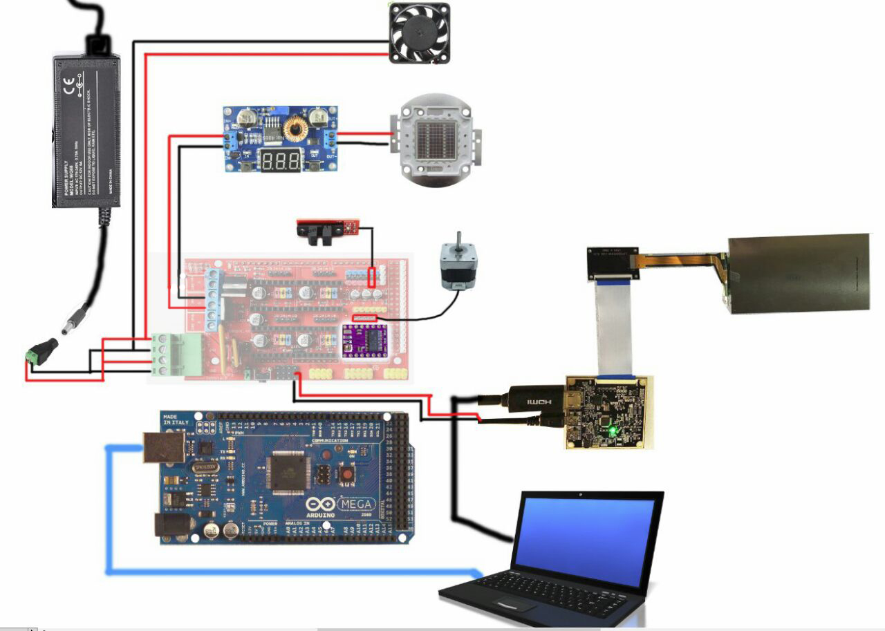 кому интересно прикладываю примерную схему подключения электроники, Светодиоды подключаются в коннекторы которые отвечают за "обдув детали", и ещепока не до конца разобрался, если сборка больше 10 ватт она требует 32 вольта и ставить после контактов надо DC DC STEP UP? а если сборка 10 ватная( можно сделать параллельно? 2х10) то надо ставить Step Down. с питанием экранчика пока не понятно, потомучто он еще едет, но я так понял и мне подсказали что он питается от Серво пинов?