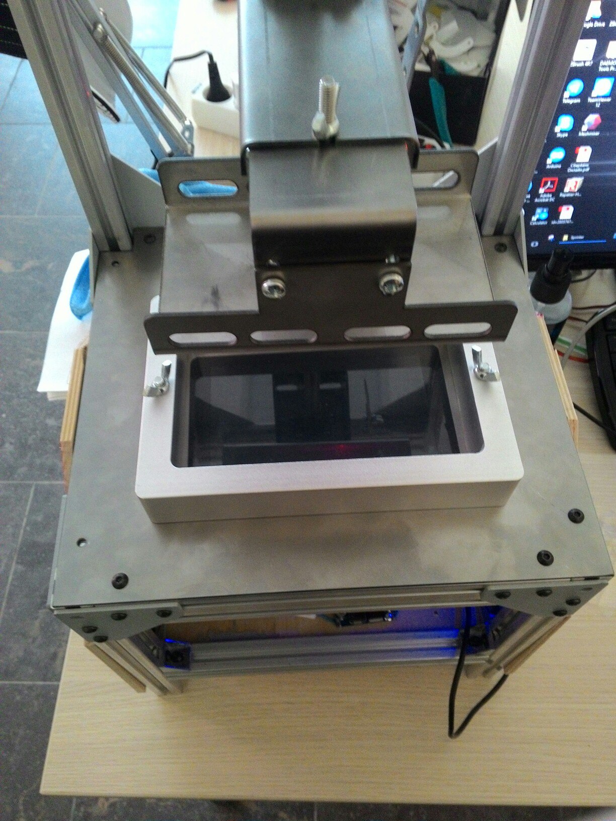 Oleg562 писал(а):Размер "ванночки" по размеру стола? будем как поршень в амортизаторе, полимер туда-сюда качать? но это не есть проблема. Каким образом закреплен экран в том черном ободке (на втором фото)? Силы которые действуют во время отрыва модели от ванны, могут в разное время (настройки и т.д.) достигать несколько кг.