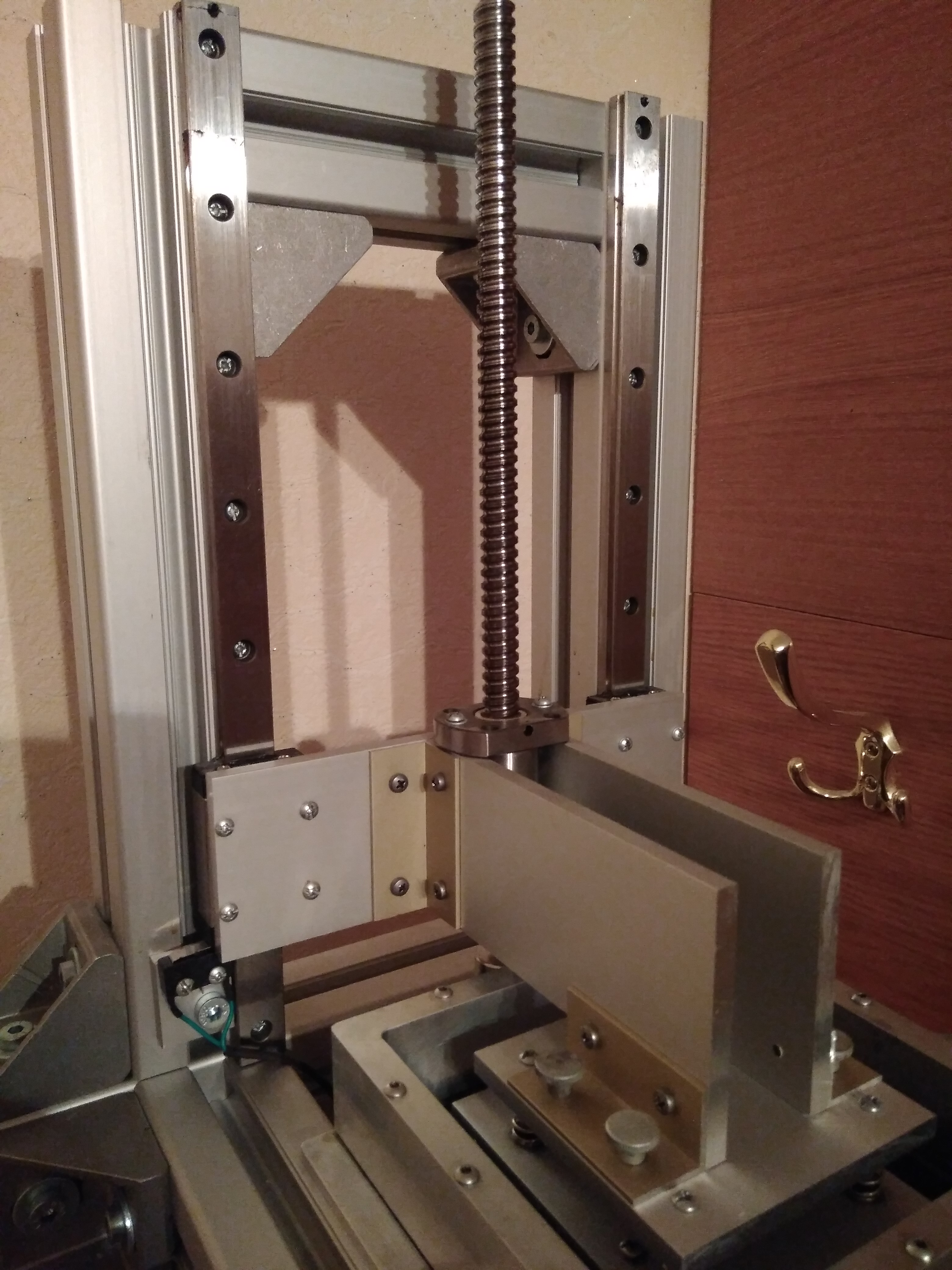 Oleg562 писал(а):Что значит "фиксирую" - концевик должен срабатывать. У швп верхний конец обязательно должен быть не закреплен. Соосносность регулируются вручную - по вращнию верхнего конца швп. На фото моя механика (dlp - принтера). Цвет Поли мера по сравнению с черным прсто супер.