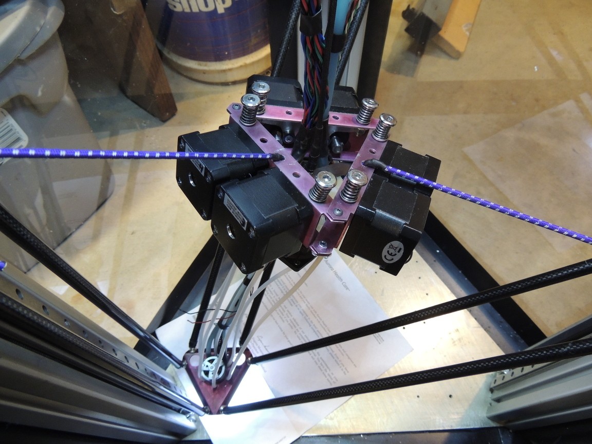 6 экструдеров размещены на плавающей платформе выше хотенда и выдают пластик по короткому боудену.