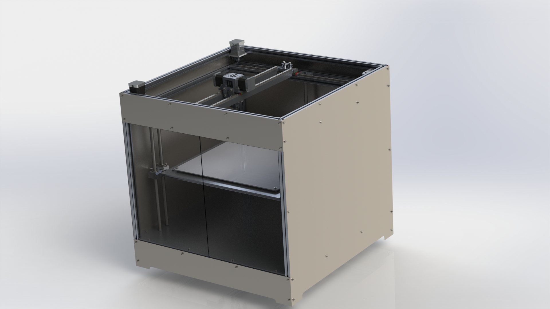 Всем привет, вроде как дорисовал в 3д и решил выставить на суд коллег свое творение. Вдохновился принтером от AKlion 2. Но решил немного его видоизменить, подогнать под свои реалии, опыт и возможности, под желаемое рабочее поле, а заодно понять, как устроены эти чудо-машинки. Использовать его планирую для своих нужд, изготовление корпусов под самоделки, а также под некоторые специфические задачи, связанные с архитектурным макетированием. Сейчас проект находится на этапе окончательного утверждения 3д модели, потихоньку заказываю электронику, механику и железки. В качестве материнки решил использовать 32-битное решение, MKS SBASE v1.3 совместно с 3.2" тач экраном. Моторы nema17 MKS 4248-450 (1А, 0,45N). Экструдеры - "китайские бульдоги", Hot End - "китайская chimera со стальными соплами".