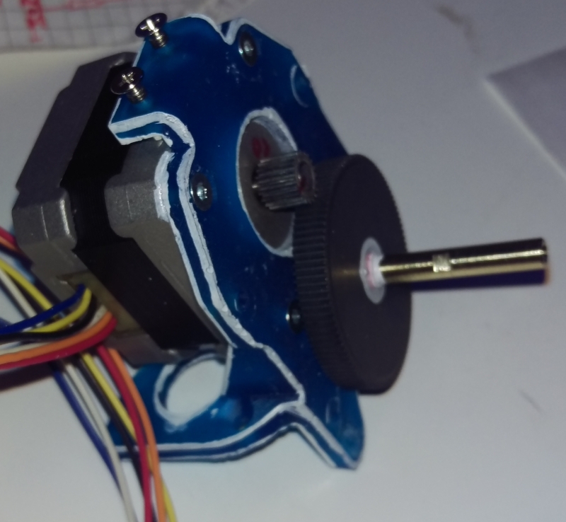 Конструктив - шаговик с шестерней достался из старого матричного принтера. По весу выигрыш гдето в 70 грам против стандартного.