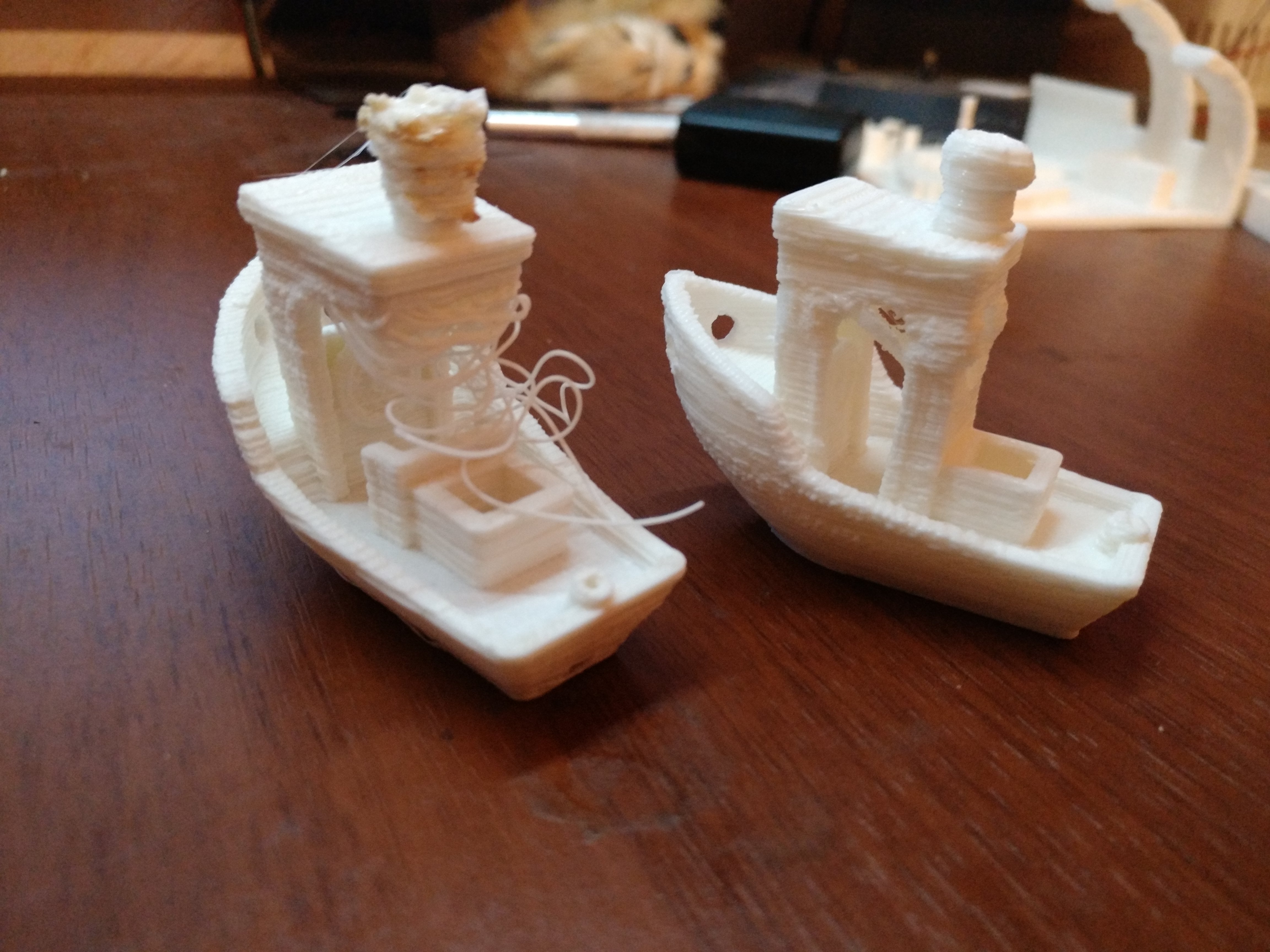 Ставлю версию 4.3.5. Стабильная которая. Настройки все те же самые, что и в 4.3.3. Автолевел работает. Печатаю. на высоте пару сантиметров сопло явно заедает пластик, при печати тестового караблика оно уже на пару миллиметров в трубу залезает. Проверял двигая оси вручную за 240мм проходит ровно 240мм, но во время печати нет. Плюс во время печати в начале видно, что пластик недодавливает, хотя экструдер откалиброван, а в конце печати видна явно сильно передавливает. Приходится ставить 50% подачи. Начинаю калибровать по новой и вижу, что вместо моих штатных 615 на экструдере в DEFAULT_AXIS_STEPS_PER_UNIT нужно ставить 1600. Непонятно, ну да ладно. Ставлю 1600, печатаю. Вновь та же картина. Вновь калибровка, уже 2480 нужно. Ибо со старыми настройками вместо 50мм пластика не давит 50. На всякий случай снимал сопло, что бы исключить его и проскальзывание пластика. на третий раз уже и 2480 мало. Т.е. почему то растет и растет число. Думал или косяк с двигателем или драйвером. Обннулял ЕЕПРОМ, заливал прошивку по новой, перезагружал принтер - не помогает. Просто почему то настройки сами динамически меняются во время печати. Настройки 1 в 1 как на 4.3.3. Пруток не проскальзывает. Пробовал рукой пруток держать и скорость большую ставить - затягивает будь здоров.