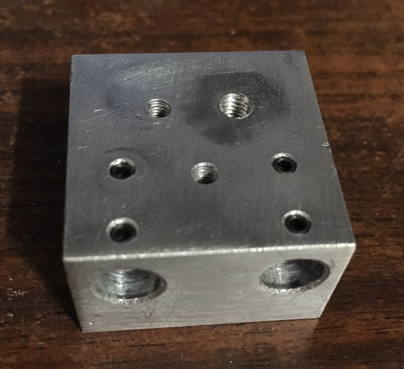 Добавлено спустя 2 часа 24 минуты 10 секунд: тыльная сторона радиатора отверстие рассверлено сверлом 3.5 и нарезана резьба м4 в принципе можно строго по центру рассверлить, но мне показалось так удобней, больше места остаётся сбоку для качалки.