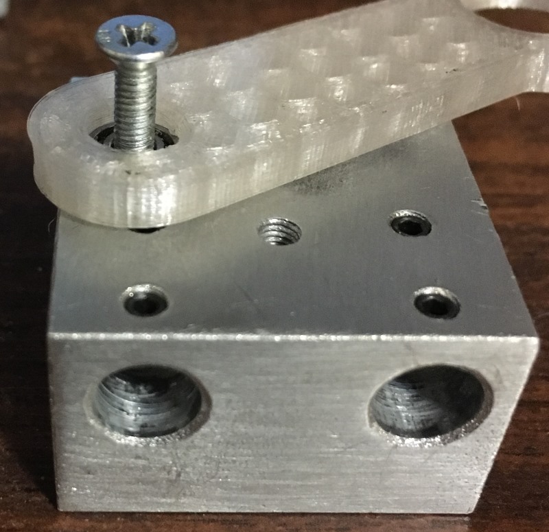 качалка. маленький подшипник и винт с потайной головкой встают заподлицо с качалкой поэтому всё умещается в зазор 4мм который даёт подшипник опорный