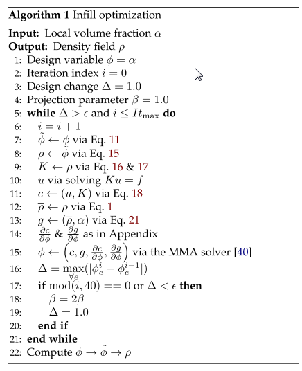 А дальше они дополняют алгоритм парой фильтров. Один для точного подсчета использованного материала, т.к. алгоритм дает приблизительную результирующую плотность материала, а не точно заданную. Анизотропный фильтр посвящен ситуации, когда сила действует не в одном направлении, а может быть приложена в разных направлениях. Потом идет исследование полученных структур, сравнение с регулярным заполнением(сотовые структуры, ромбические) и с классической оптимизацией, как они работают в случае повреждения и как отвечают на приложенные силы.