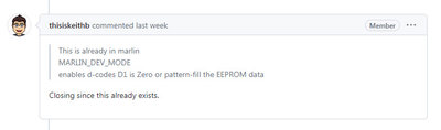 Понимаю что прошло уже не мало времени, но все же, если предидущий вопрос с обнулением EEPROM касался того что в Marlin2.0 сконфигурированном по умолчанию не сохраняются в EEPROM новые значения для шагов моторов, то я лечил так: