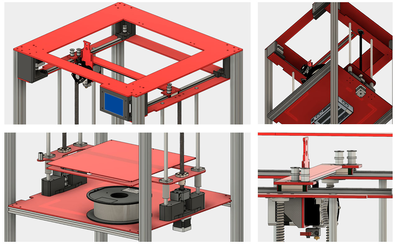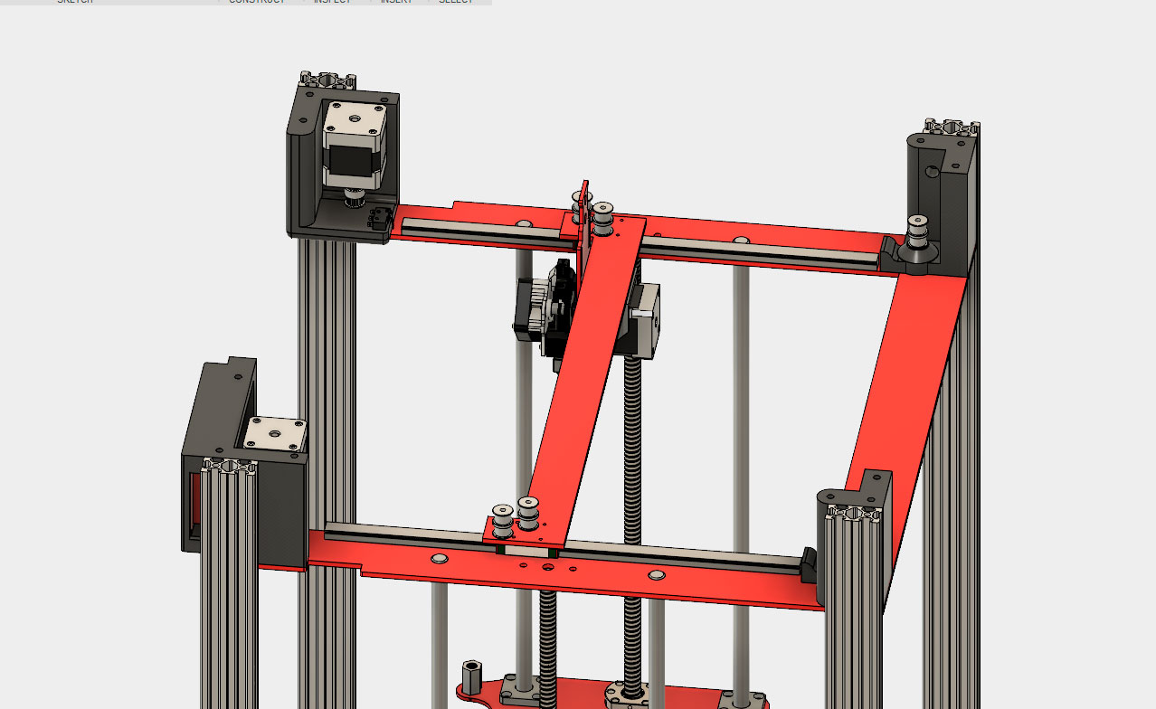 Доброго здоровья, это мой первый проект принтера, до этого только печатал. Но, все принтеры с которыми имел дело (штук 9 разных) имели свои недостатки, поэтому решил сделать себе принтер который бы устраивал меня полностью. За основу взял кинематику coreXY с одного работающего принтера. Особенность в том что кинематика перевёрнута и двигатели спереди.