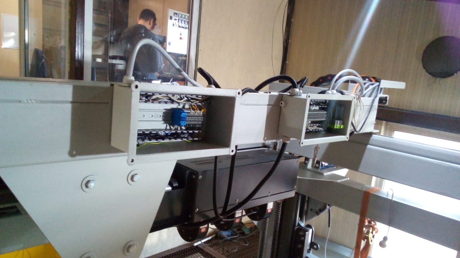 Как вариант написать парсер Гкода для компьютера, который бы на ПК готовый Гкод разбирал и находил положение пластика на предыдущем слое и вставлял в Гкод команды на управление дюзой, этот исправленный код отправлять в контроллер. Ну а управление дюзой прикрутить к контроллеру станка.