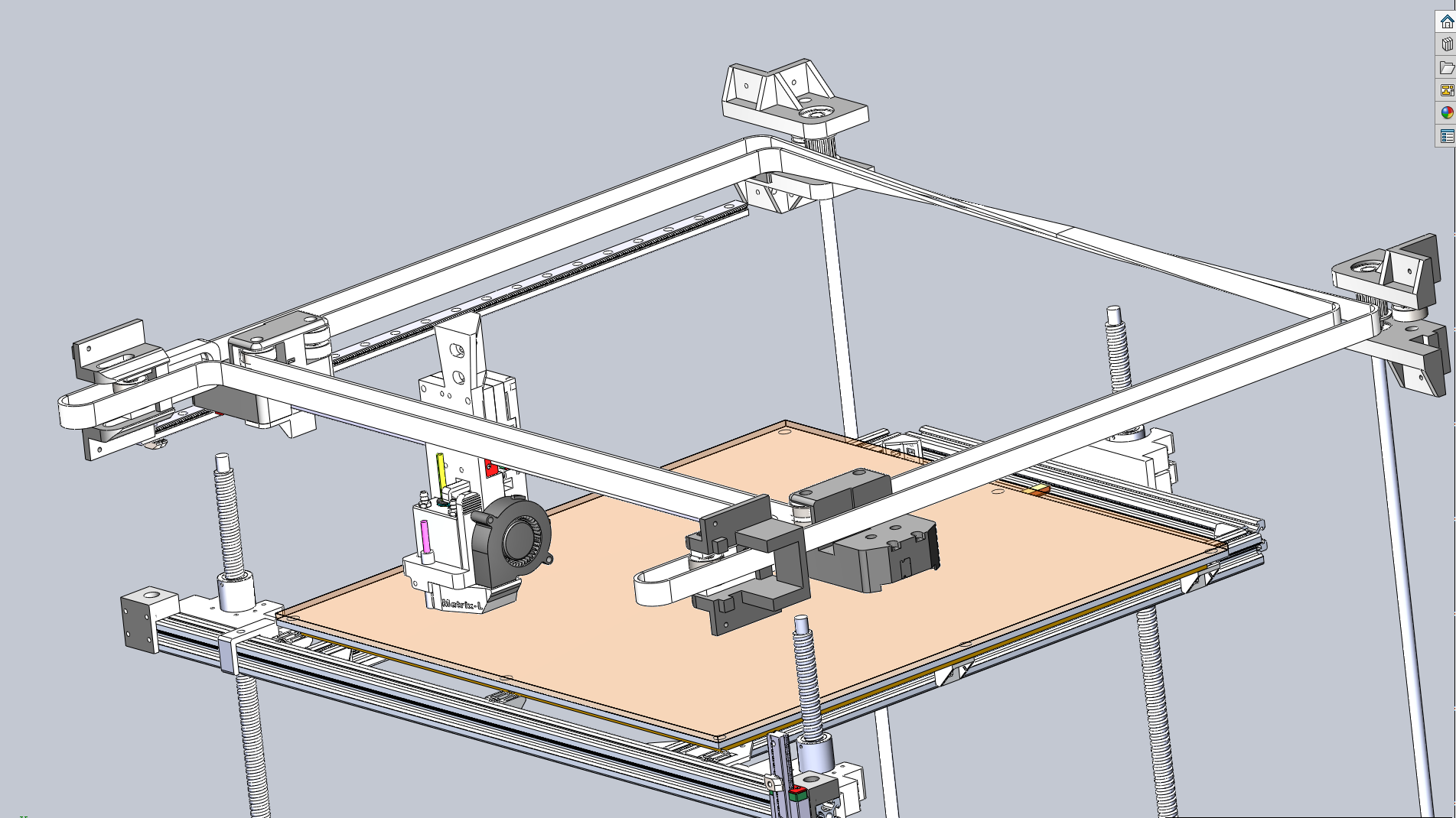 скорость по Z для меня не приоритетна 10 мм/с(полностью устраивающая) сейчас на четырех М8 шпильках приводимых двумя ремнями с 1 двигателя, так вот я задолбался 2 дня все выставлять соосно и перпендикулярно, малейший перекос гайки или непараллельность шпилек приводит к нагрузке на двиг и пропуск шагов.