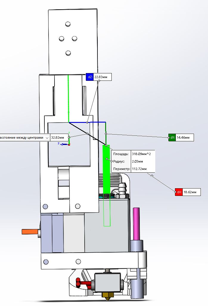 плечо получается расстояние между канавками по которым катается рельса, для двух 12mgn около 10мм , второе плечо расстояние от каретки до горячего конца.
