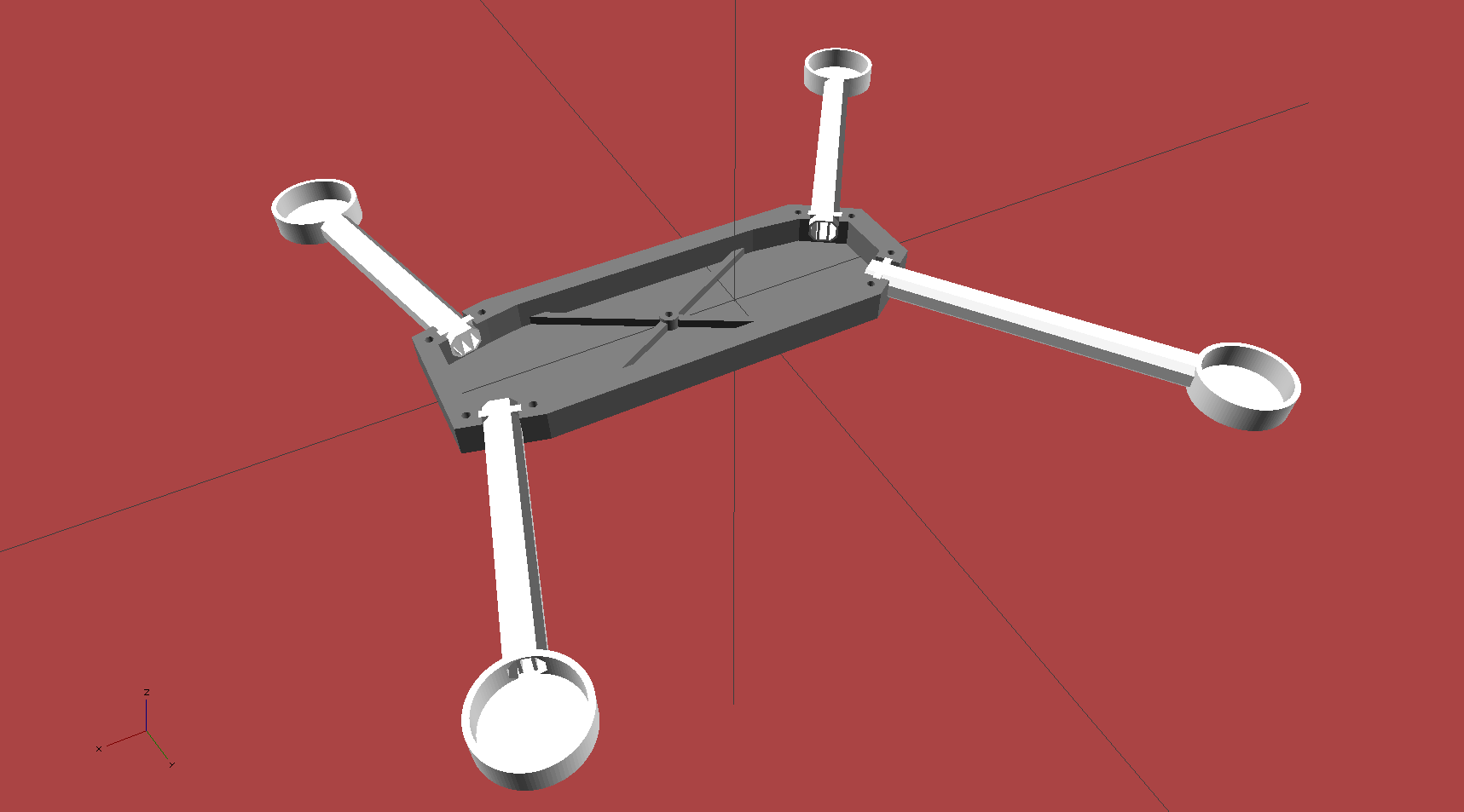 Идея лап-кабель каналов из проекта T4 Quadcopter http://www.thingiverse.com/thing:261145 (вот только у меня три канала, а не два)