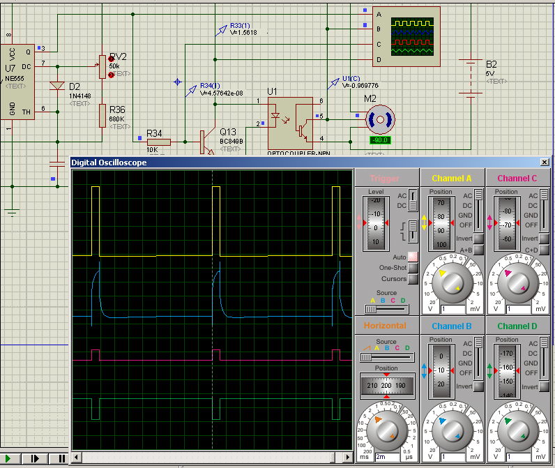 там лучше осциллограф подключить, чтобы посмотреть переходные процессы, одновременно с предыдущими графиками.