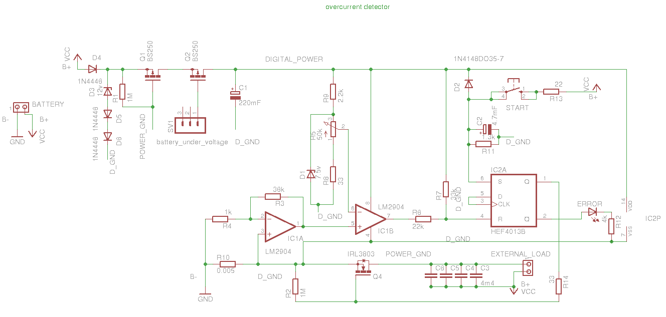 За основу взята схема из журнана радио 2004/3 "Электронный предохранитель",