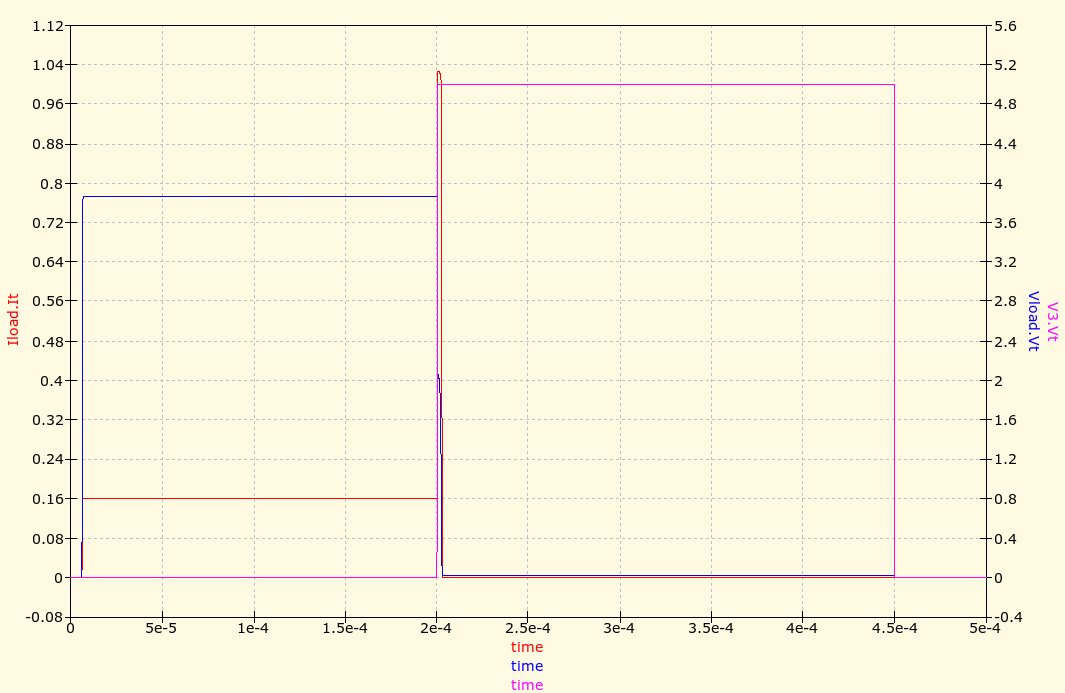 V2 имитирует импульс запуска, V3 совместно с T2 - возрастающую нагрузку.