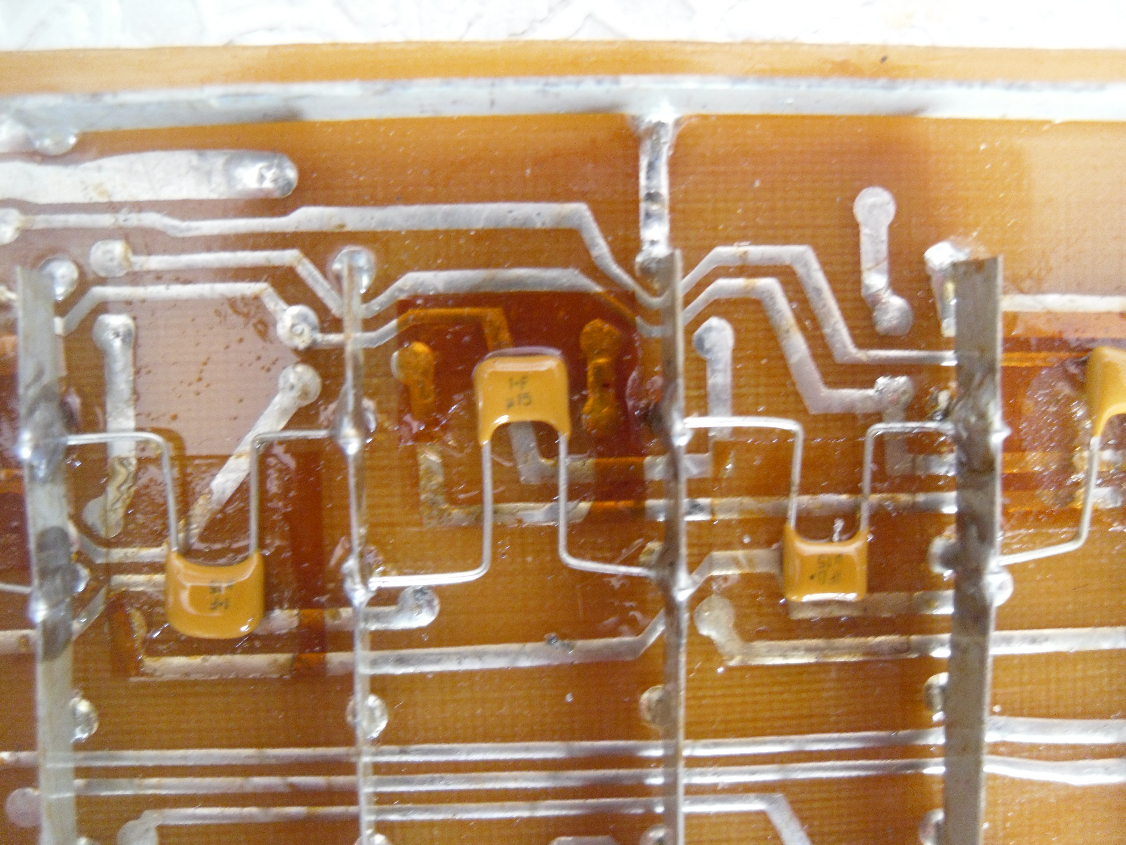 Затем,после того,как устройство прошло ремонт на заводе,пришли на этой же плате вот такие конденсаторыФОТО№1/1(перепаяны заводские)а вот такие конденсаторы в такую же плату впаивали другие товарищи ФОТО№1/2