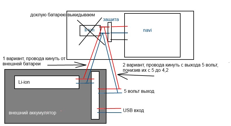по причине смерти родной литиевой батареи вместе с родной схемой зарядки в навигаторе, хочу туда чегонить сколхозить.