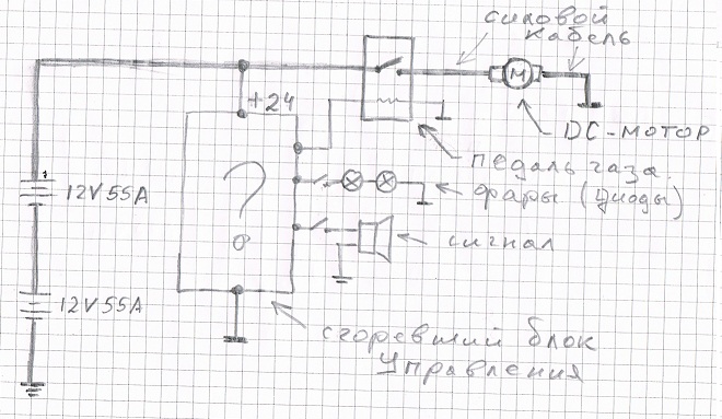 пока кроме как предложить более информативно описать всё и поискать в сети "схема детский электромобиль" ничем помочь не смогу.А при чем тут обмотка катушки реле и 60А?Dizayner писал(а):- я нашел реле 24В но обмотки катушки вероятно не рассчитаны на 60 Ампер ?! вот я и считаю что в коробке стоит еще и ограничитель по току на обмотки реле, фары (на светодиодах) и сигнал ?!