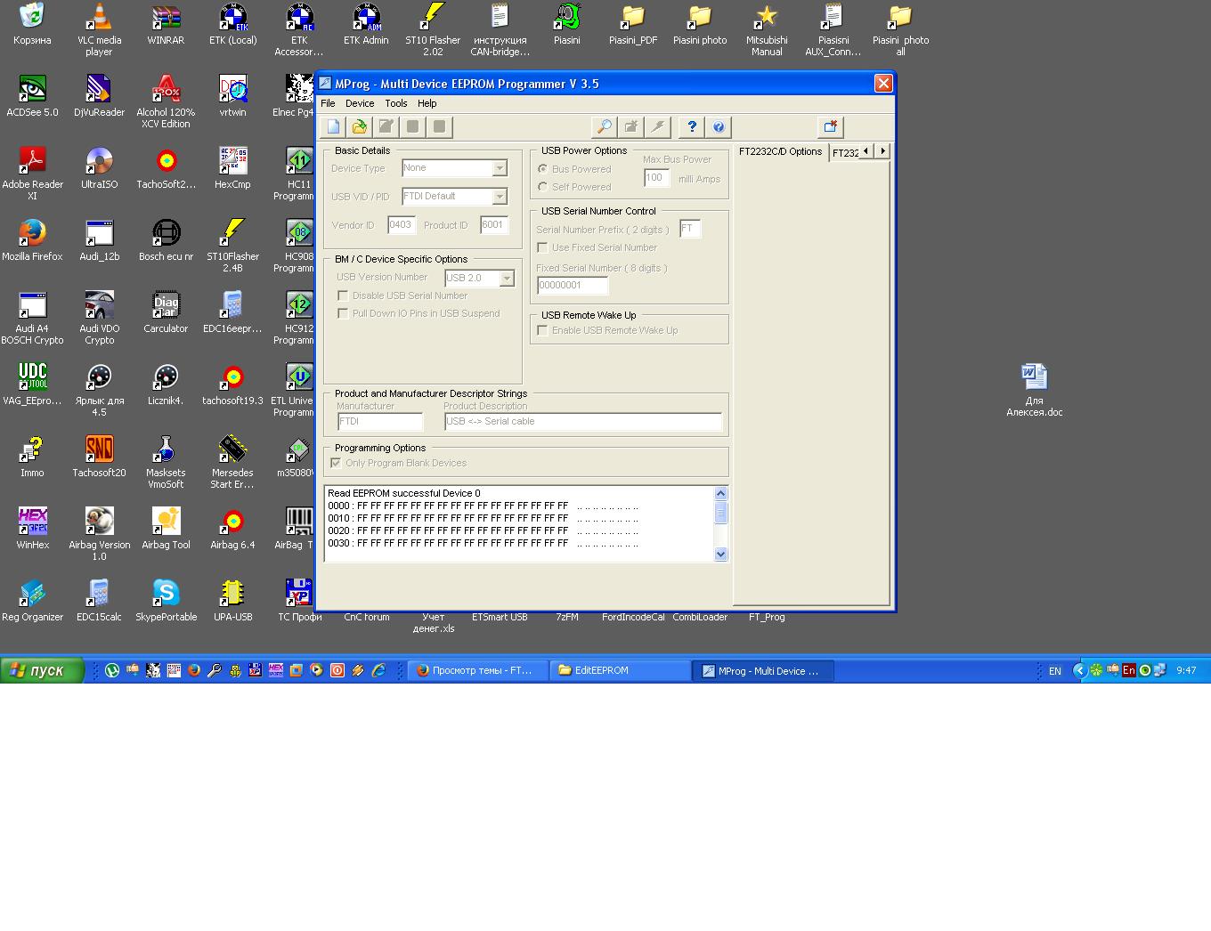 Madf писал(а):Чот меня насторожило это предложение в описании "Утилита предназначена для работы с внешней EEPROM, используемой совместно с микросхемами FT232BM, FT245BM и FT2232C для хранения USB-настроек пользователя", как бы есть только внутренняя (у 245)