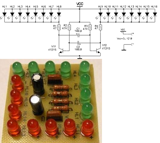 Ведь кормить базу транзистора через низкоомную нагрузку + 47ом + 100мкф. - может и поплохеть бедному кт315. А потом понял, школота модернизируют стандартную схему мультивибратора с высокоомными выходами
