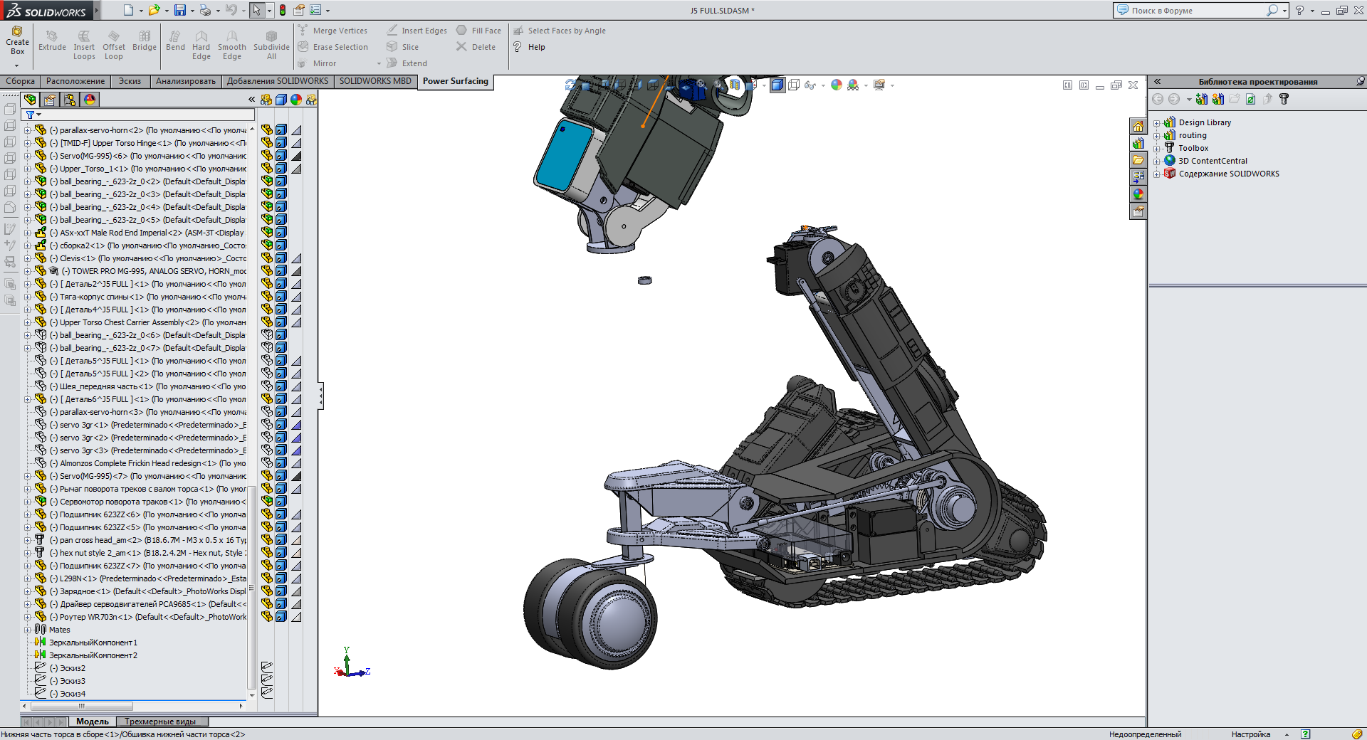 В первенце - 25 сервомоторов на двух IC2 16-канальных серводрайверах на PCA9685, из которых 5 - стандартных mg996r, остальные микро - sg90, 4.3g b и проч.