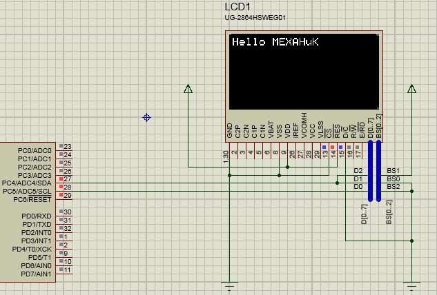 Парни! Помогите пожалуйста подсоеденить в Proteus 8 вот этот дисплей(UG-2864HSWEG01) по i2c шине к Atmega8. Ни как не могу понять как подключать. Вроде как написано в даташите что D1 это SDA, а D0 это SCL. Вот только не понятно как их подключать в Proteus. На месте этих выводов две синие полоски. К сожалению с Proteus я почти не знаком, а проект надо кодить. Заранее ОГРОМНОЕ человеческое спасибо!